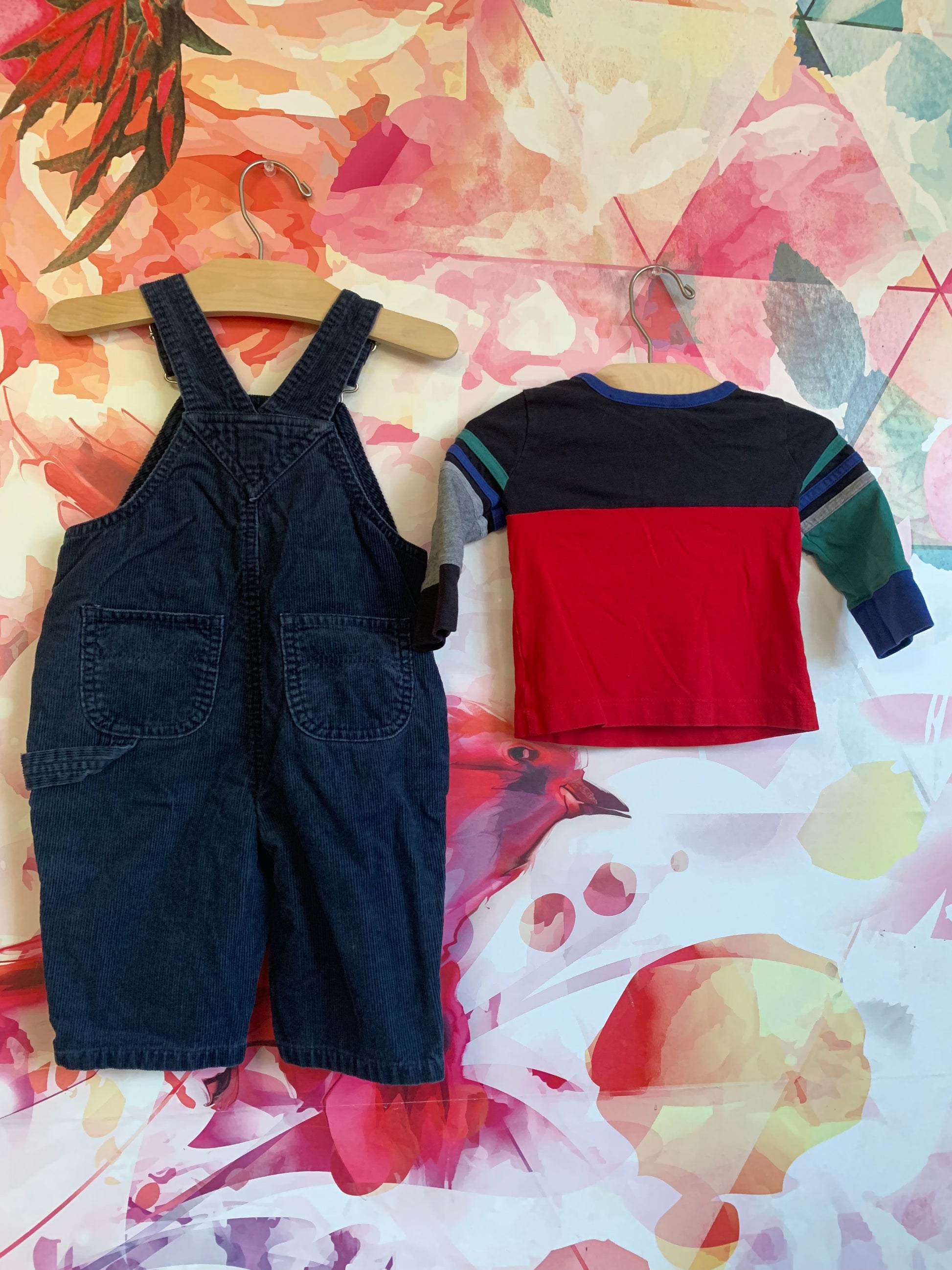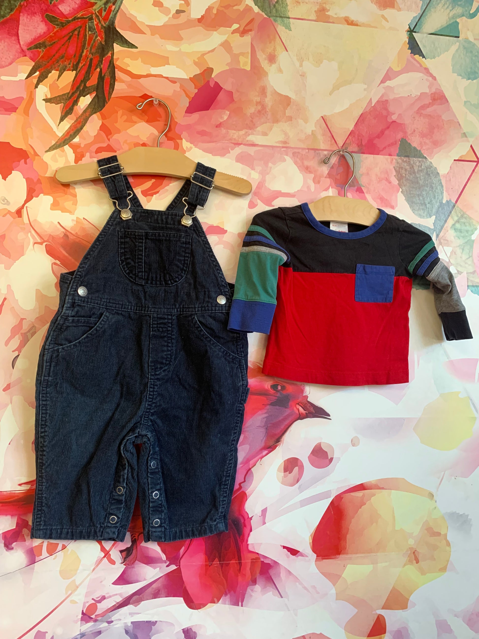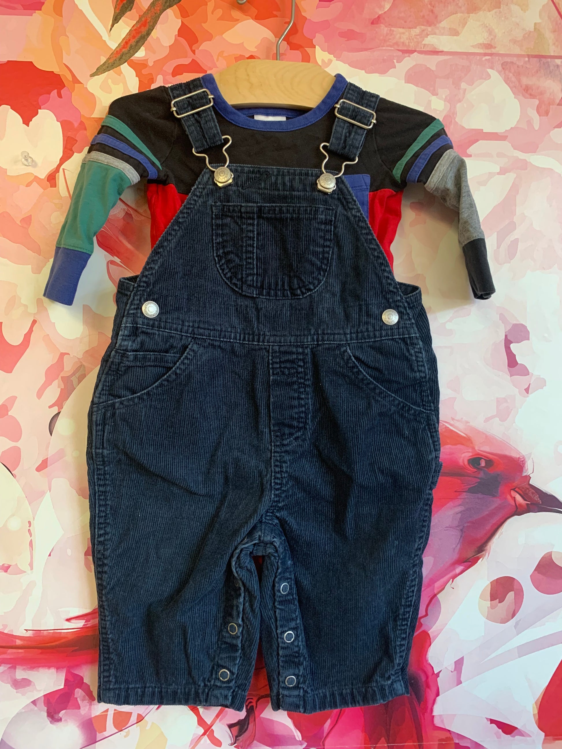 Baby Gap blue corduroy overalls & Hanna Andersson long sleeve top. Both 6-12m
