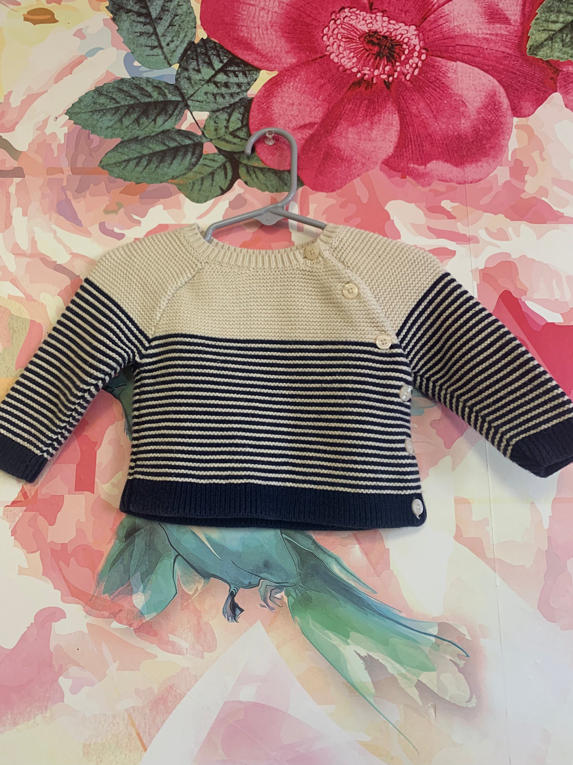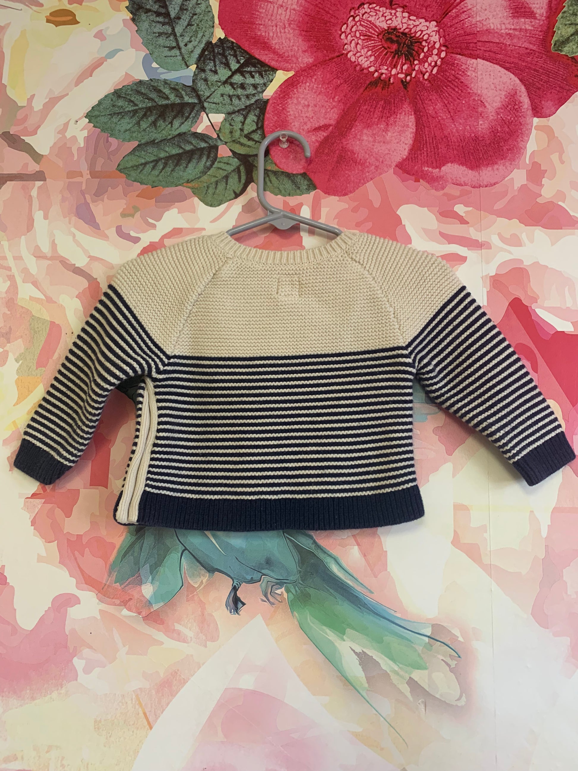 Baby Gap blue/cream striped knit sweater with buttons. Size 3-6m