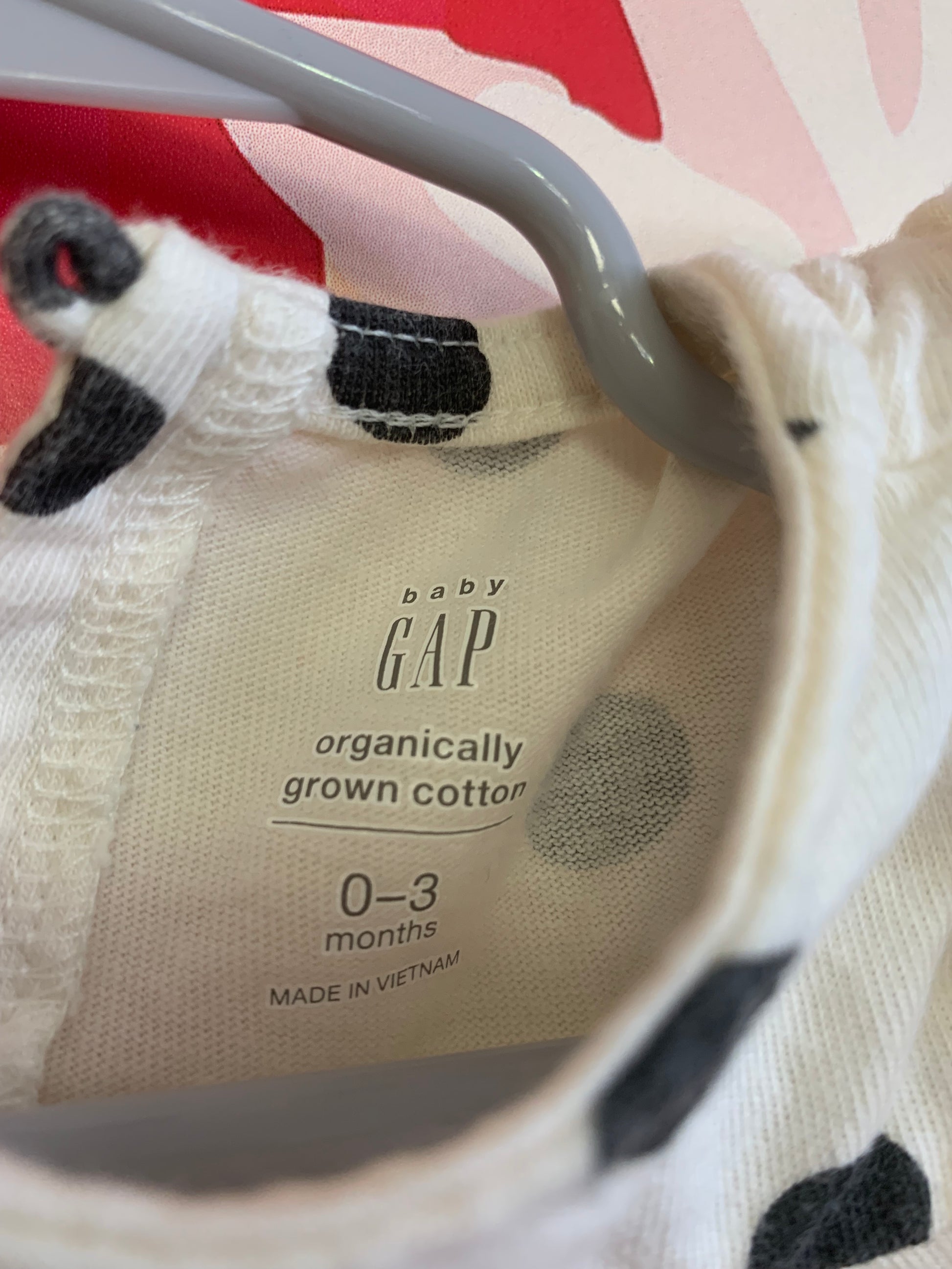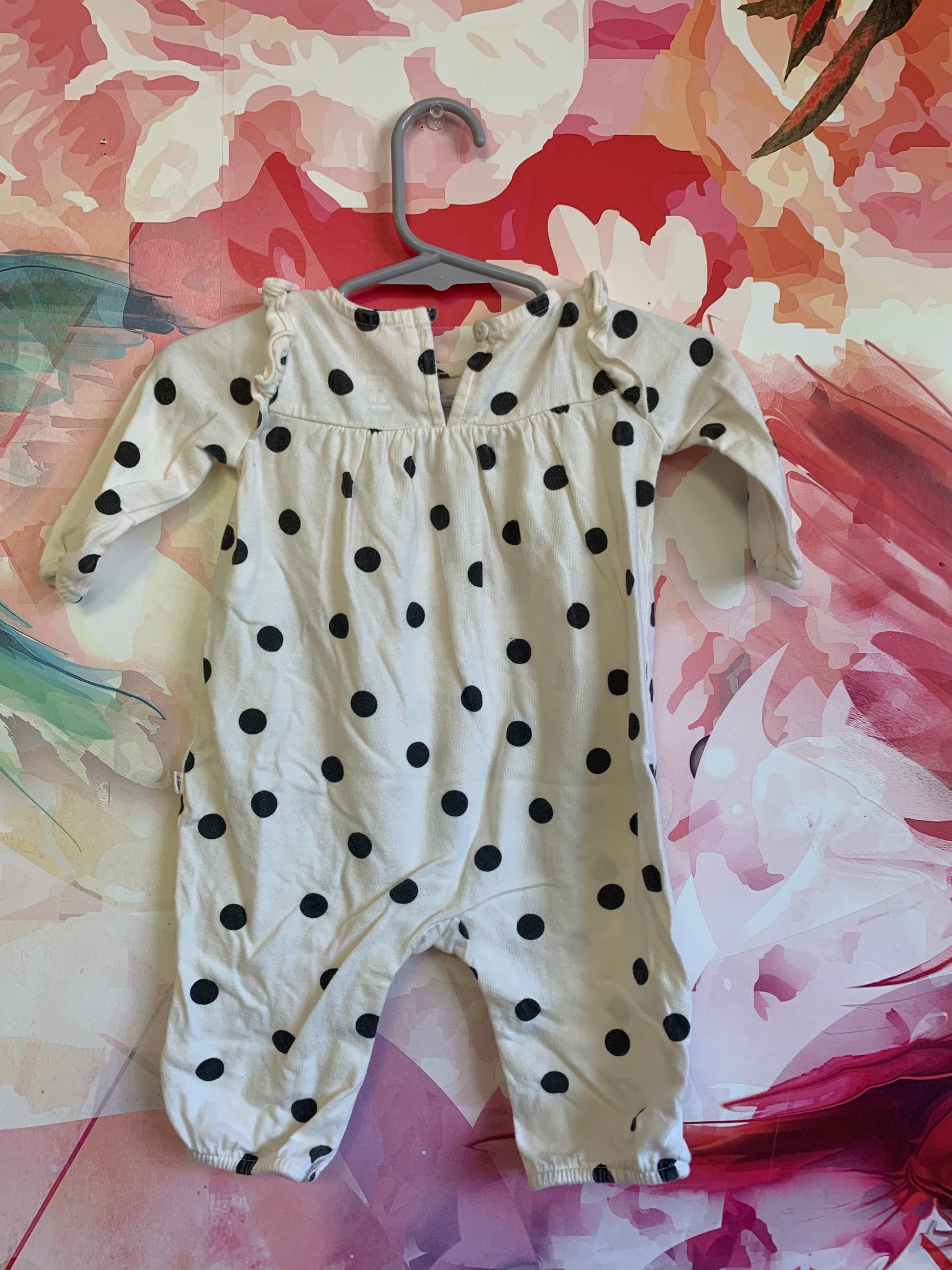 Baby Gap cream long sleeve romper with black polka dots. Snap closures. Size 0-3m