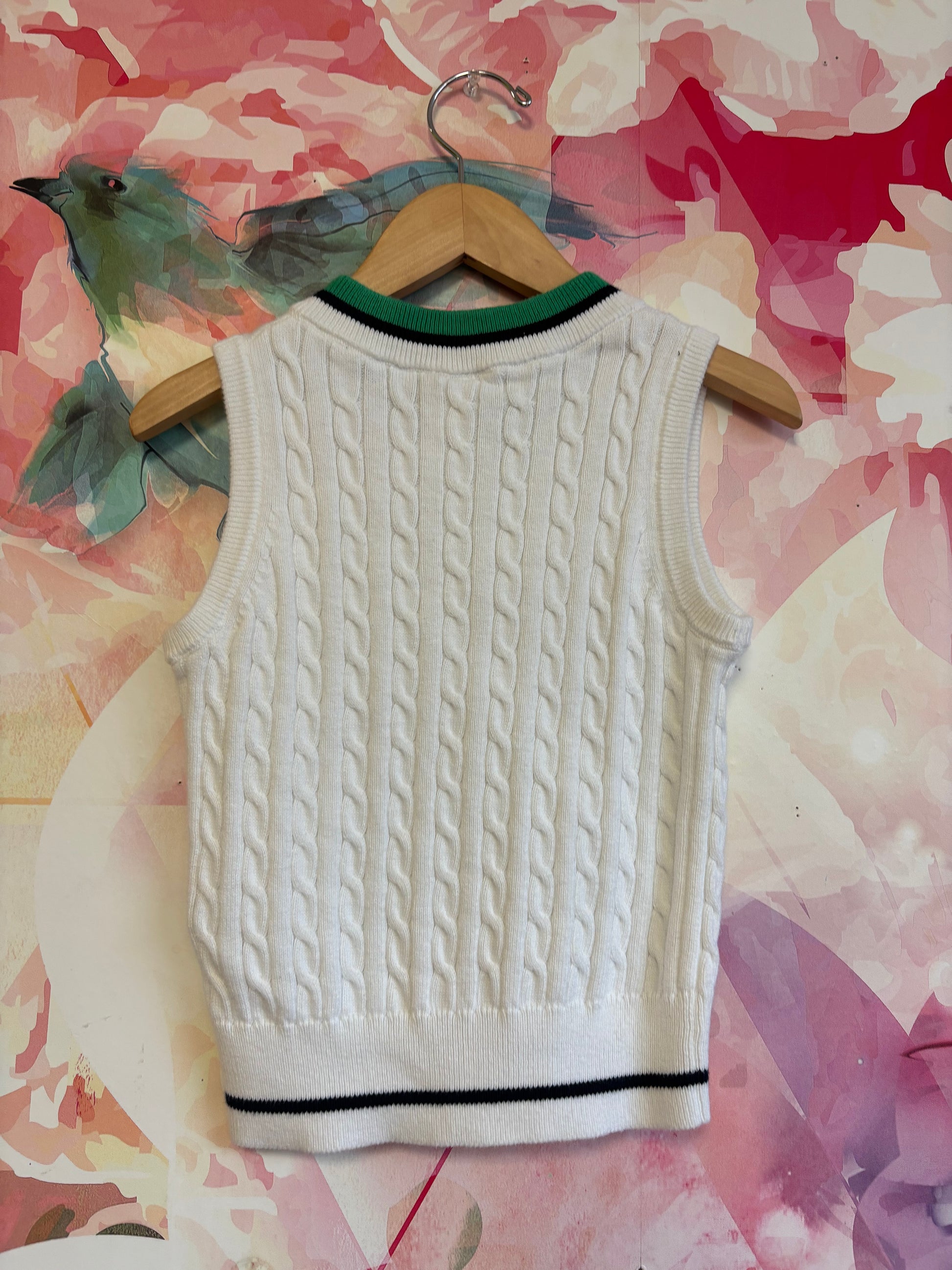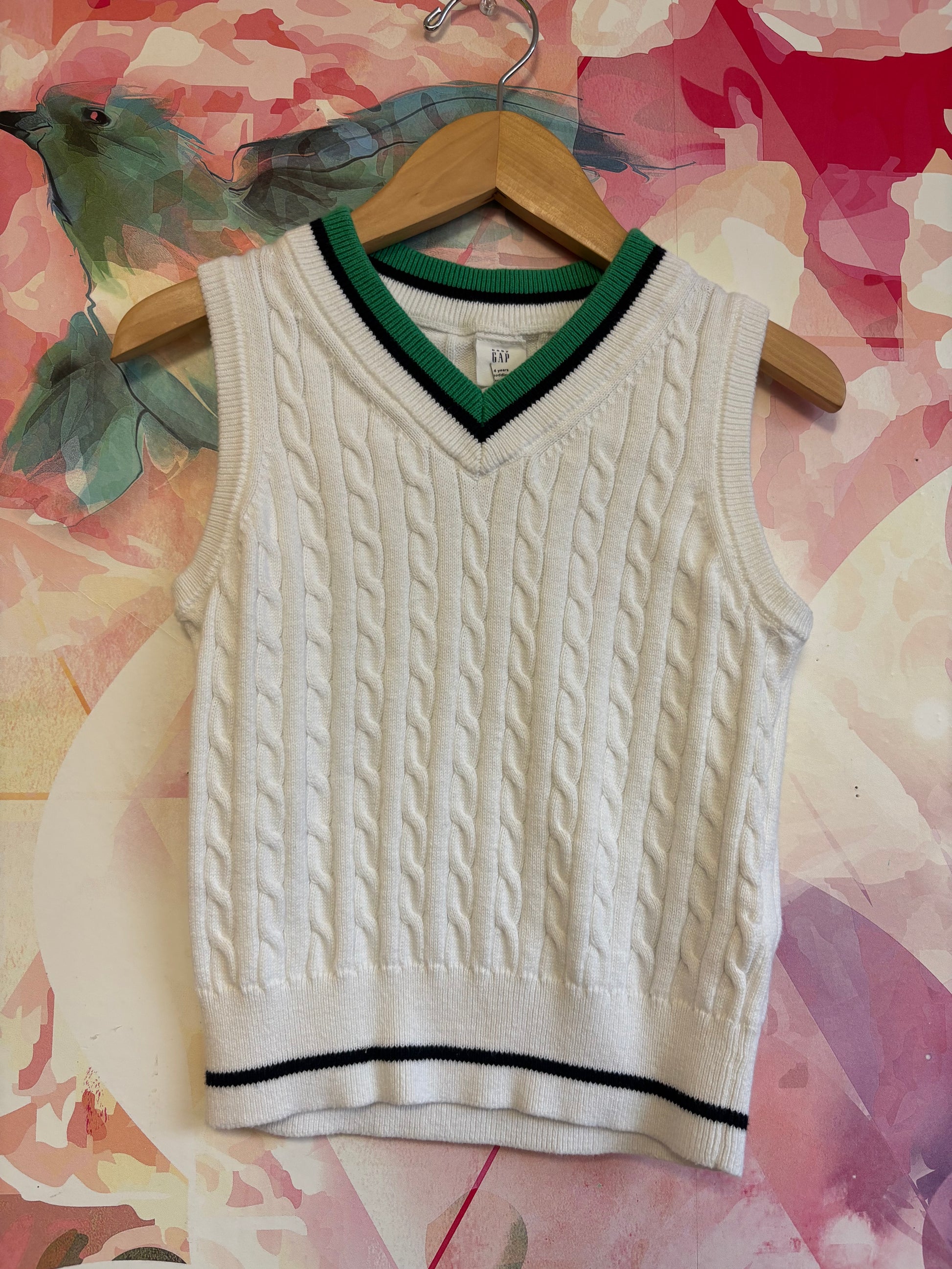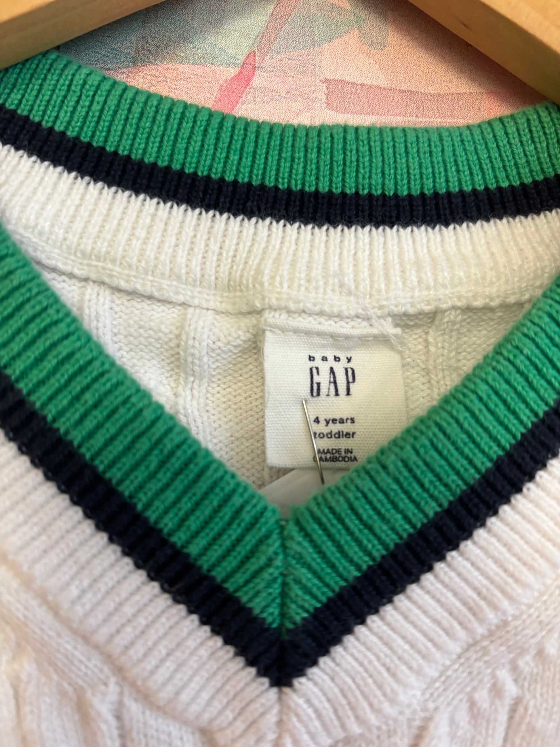Baby Gap white knit vest with blue/green stripe on neck. Size 4T.