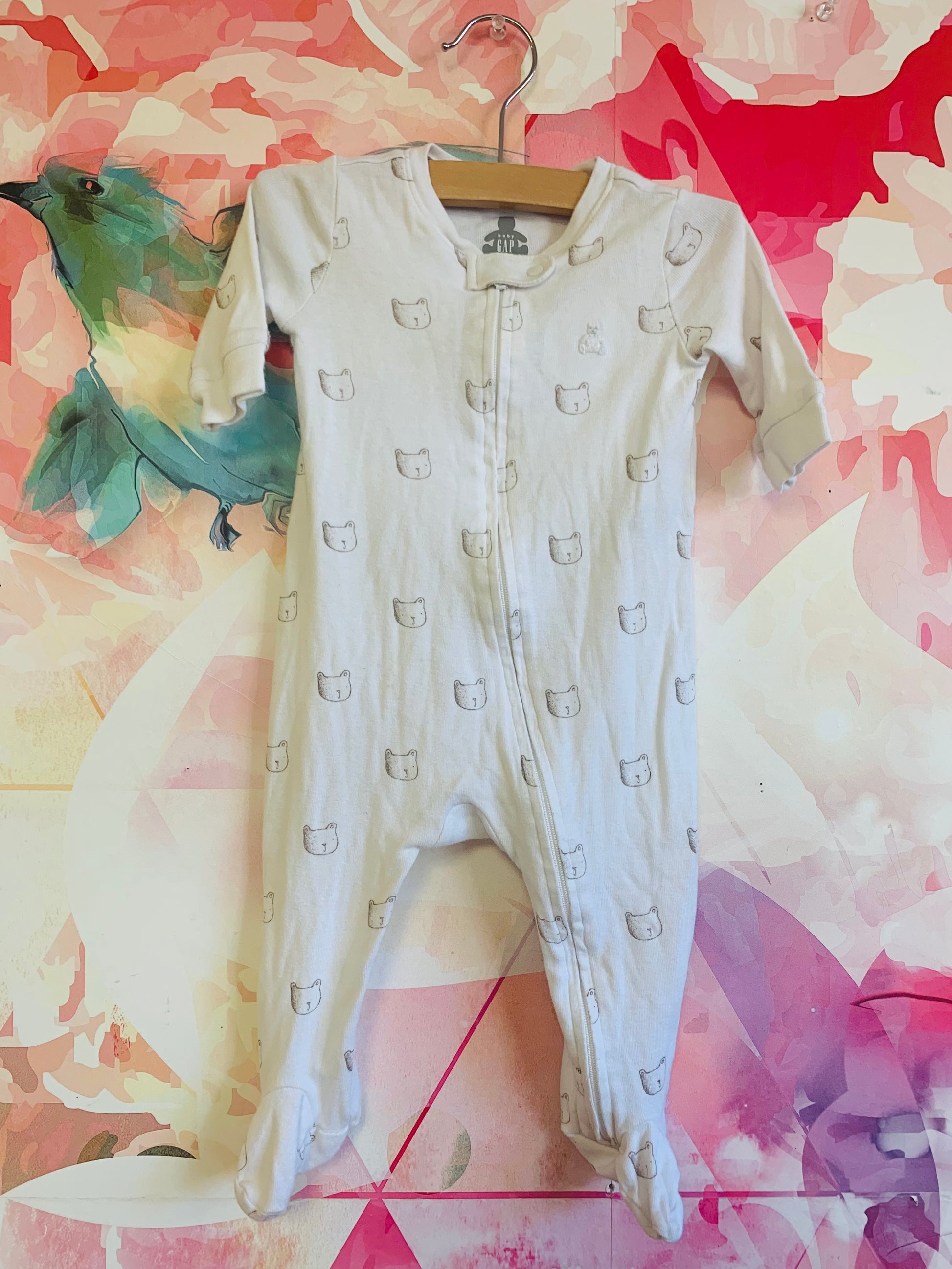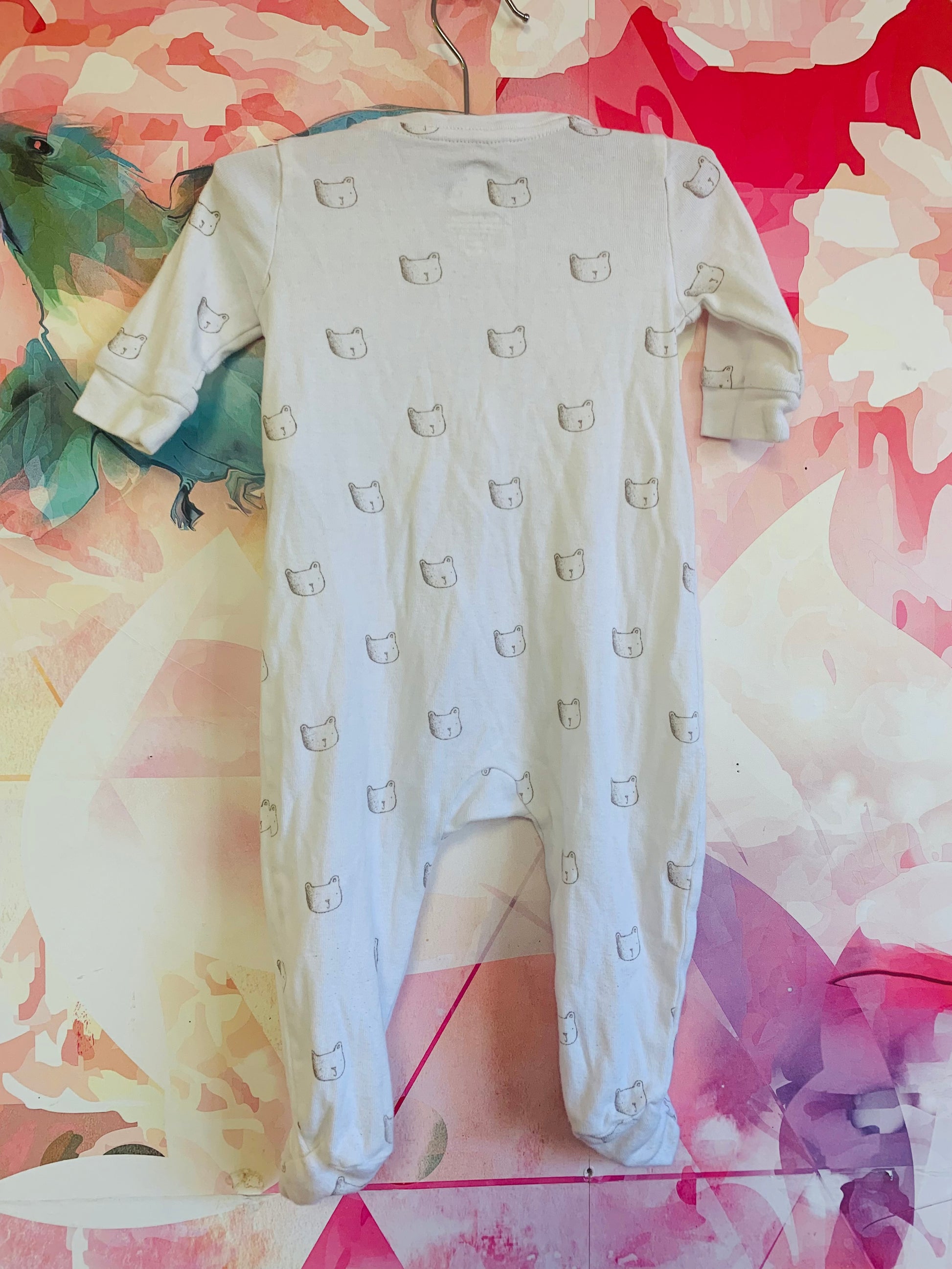 Baby Gap white long sleeve romper with brown bear faces. Size 3-6m