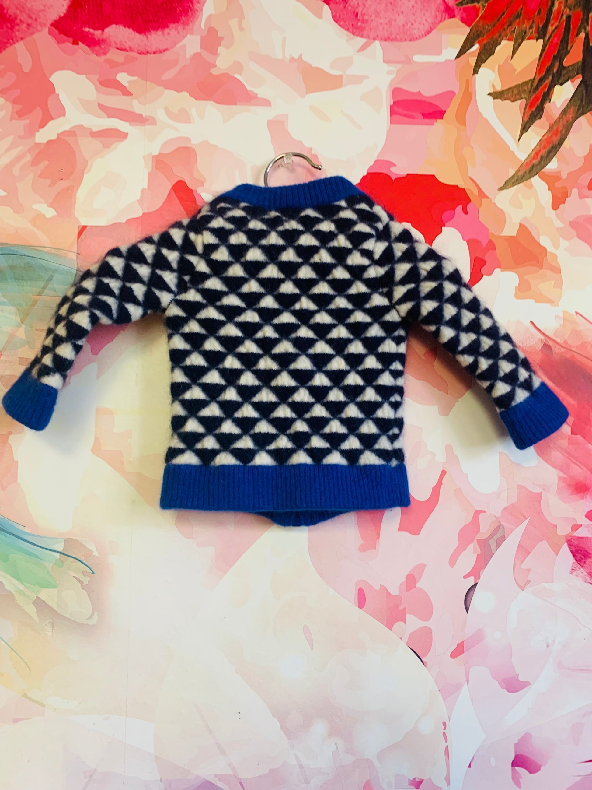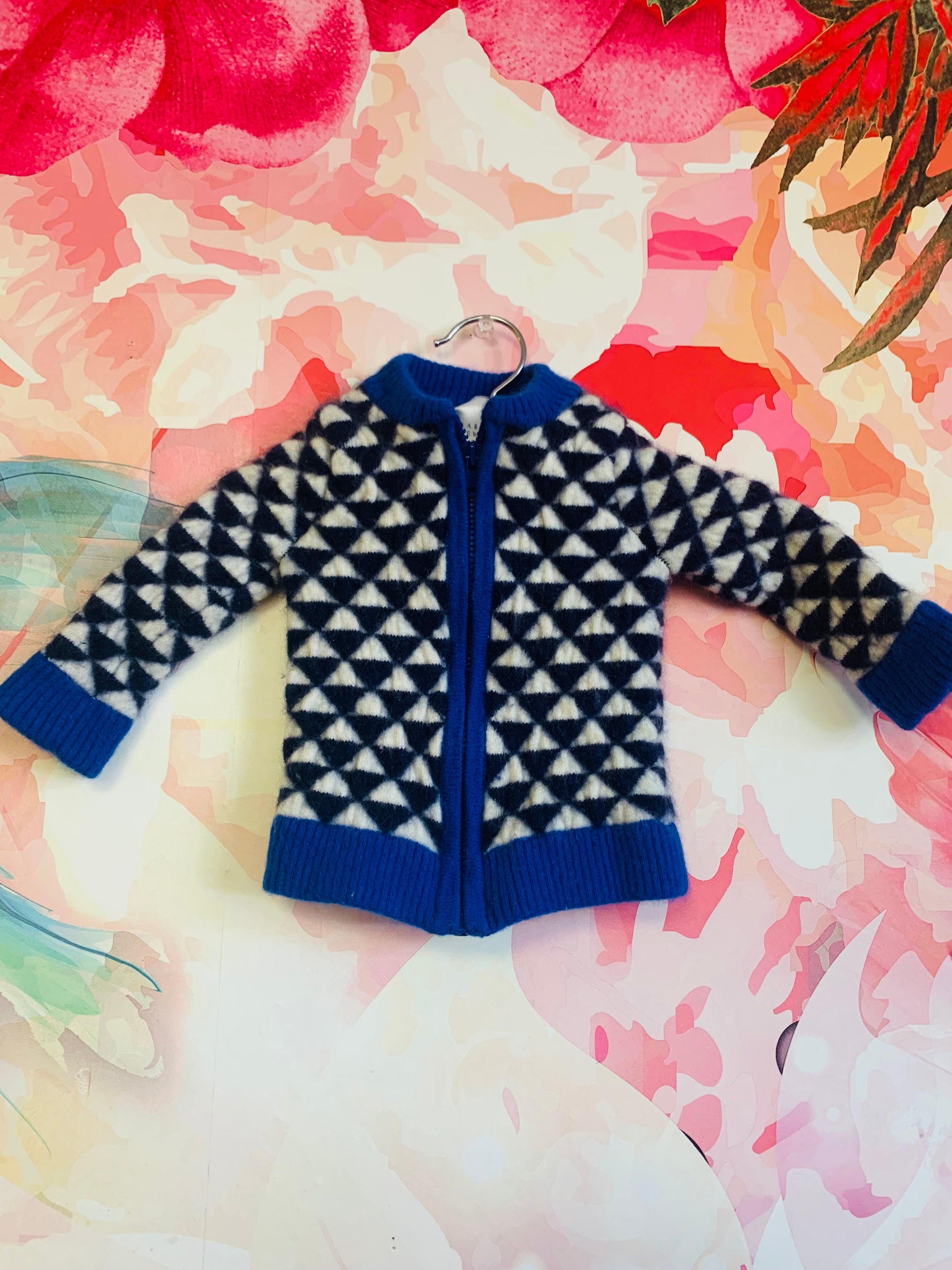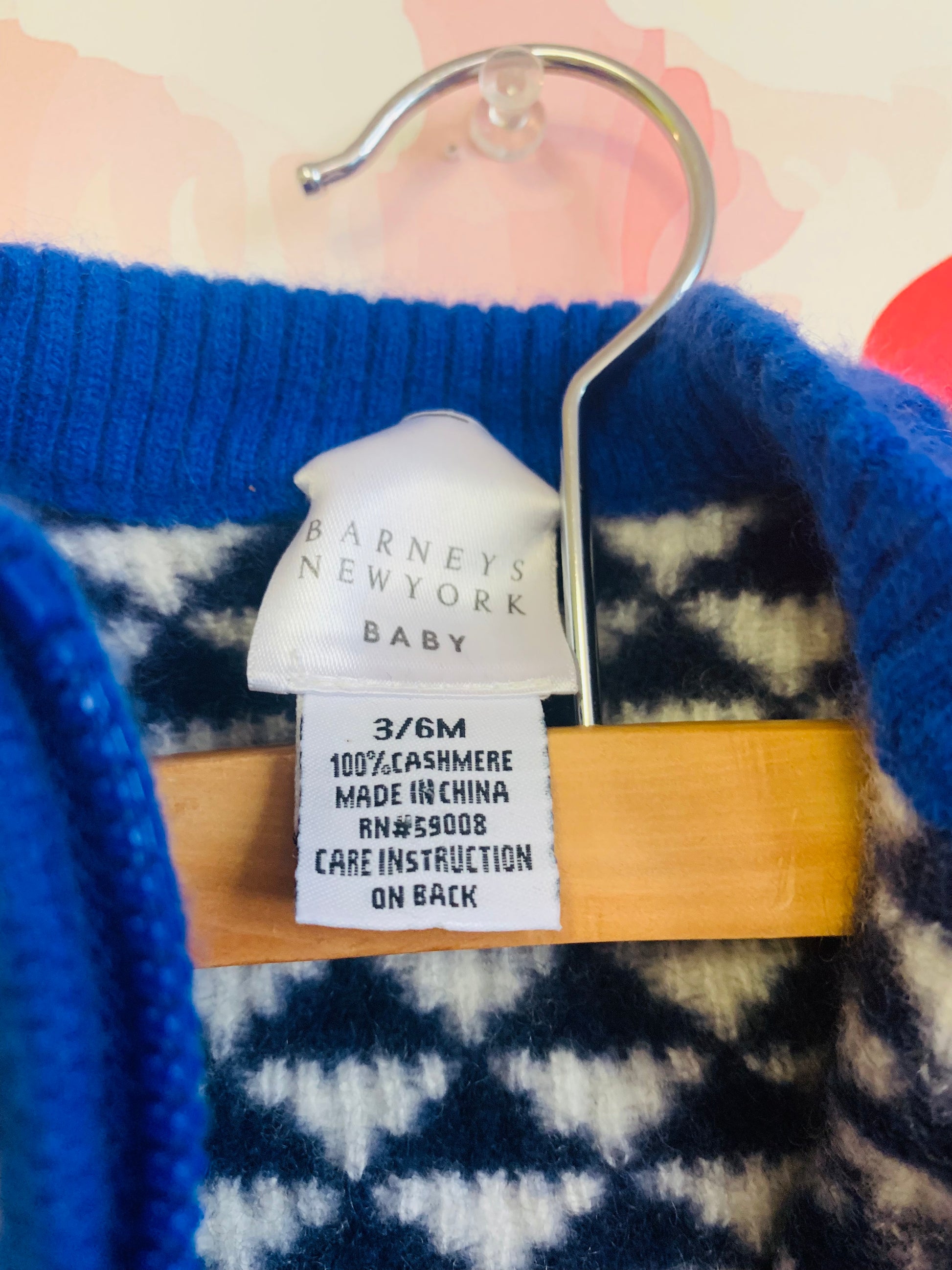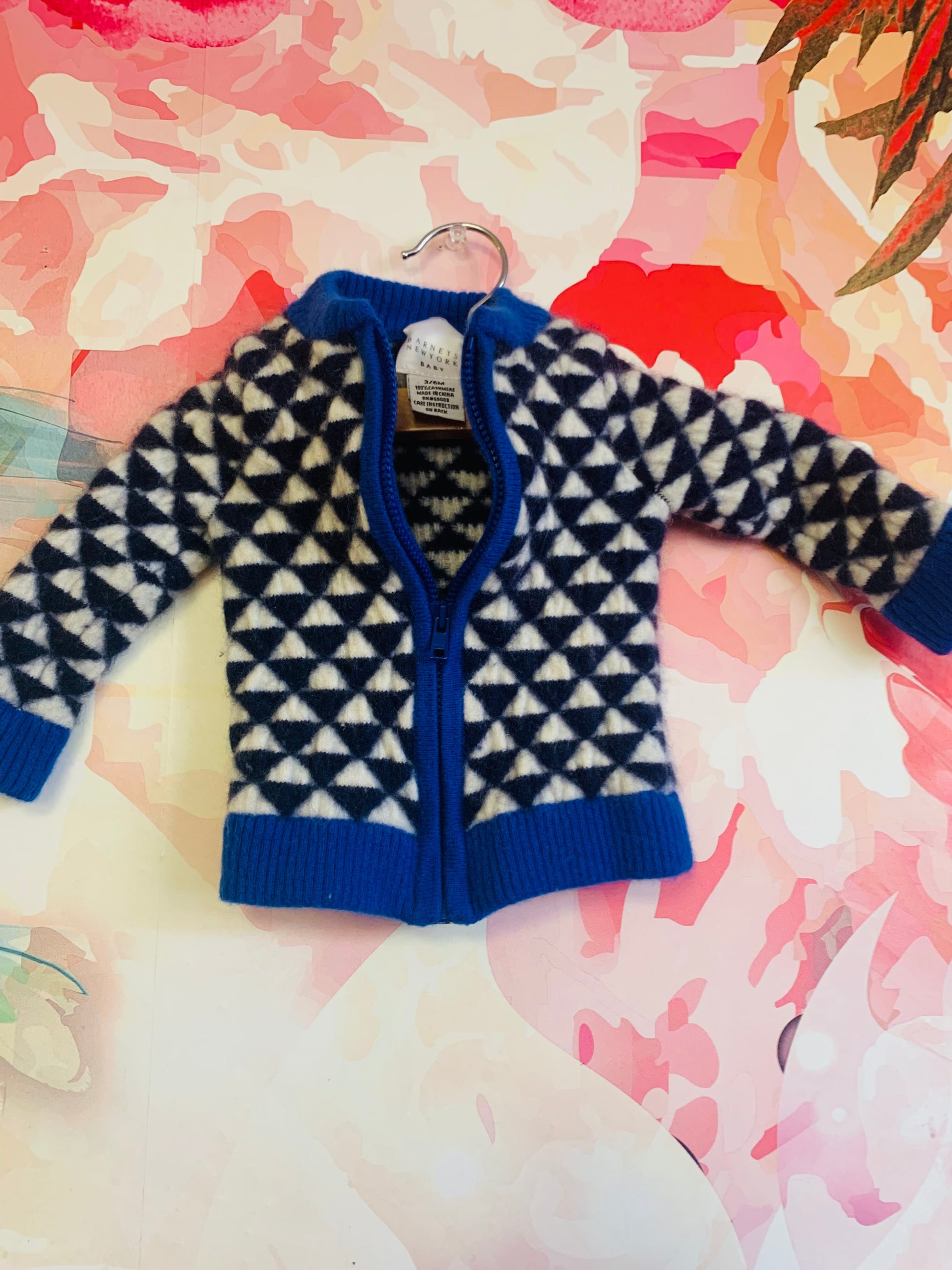 Barney’s New York 100% cashmere blue, black, white zip up sweater. Size 3-6m.