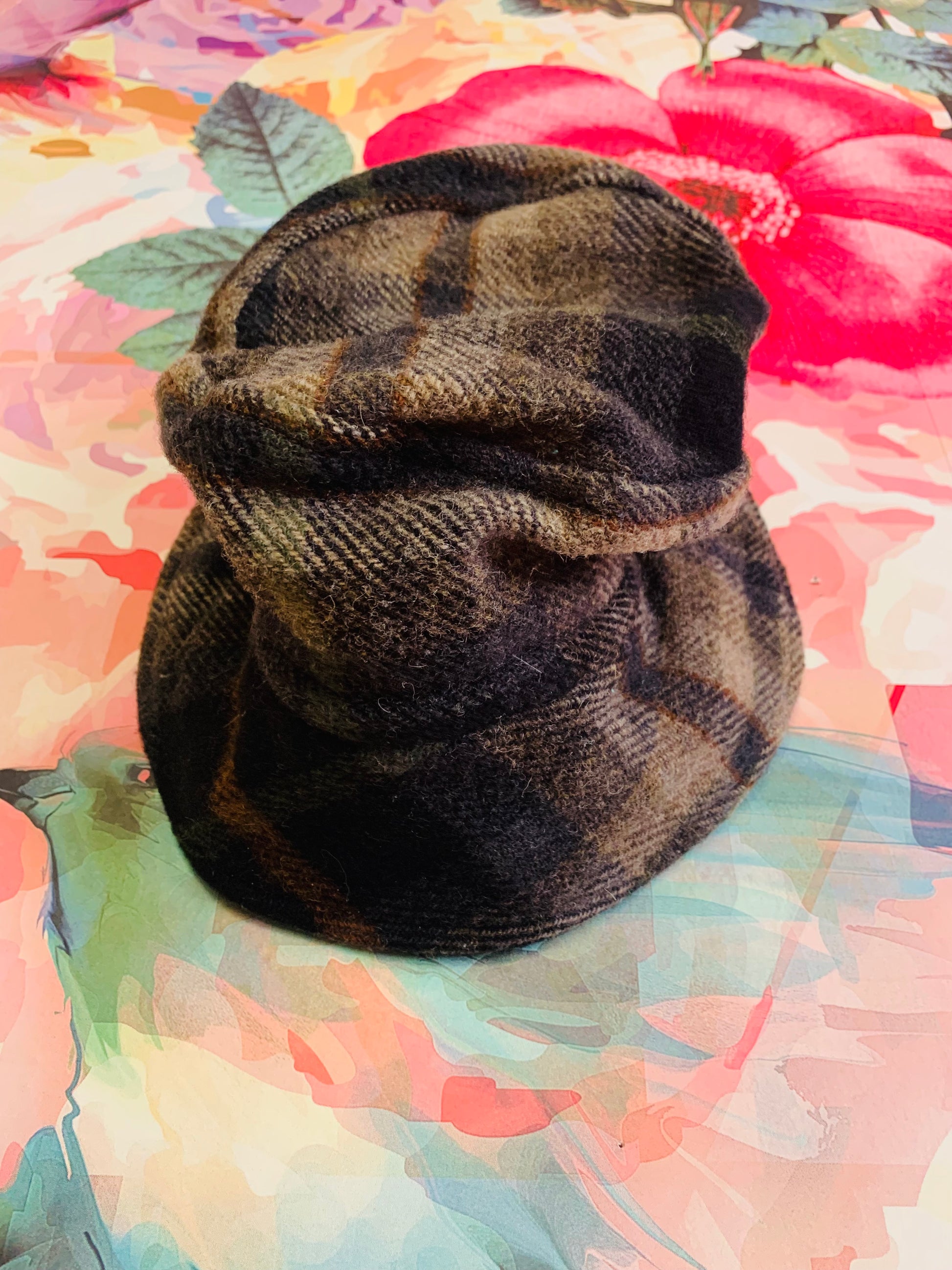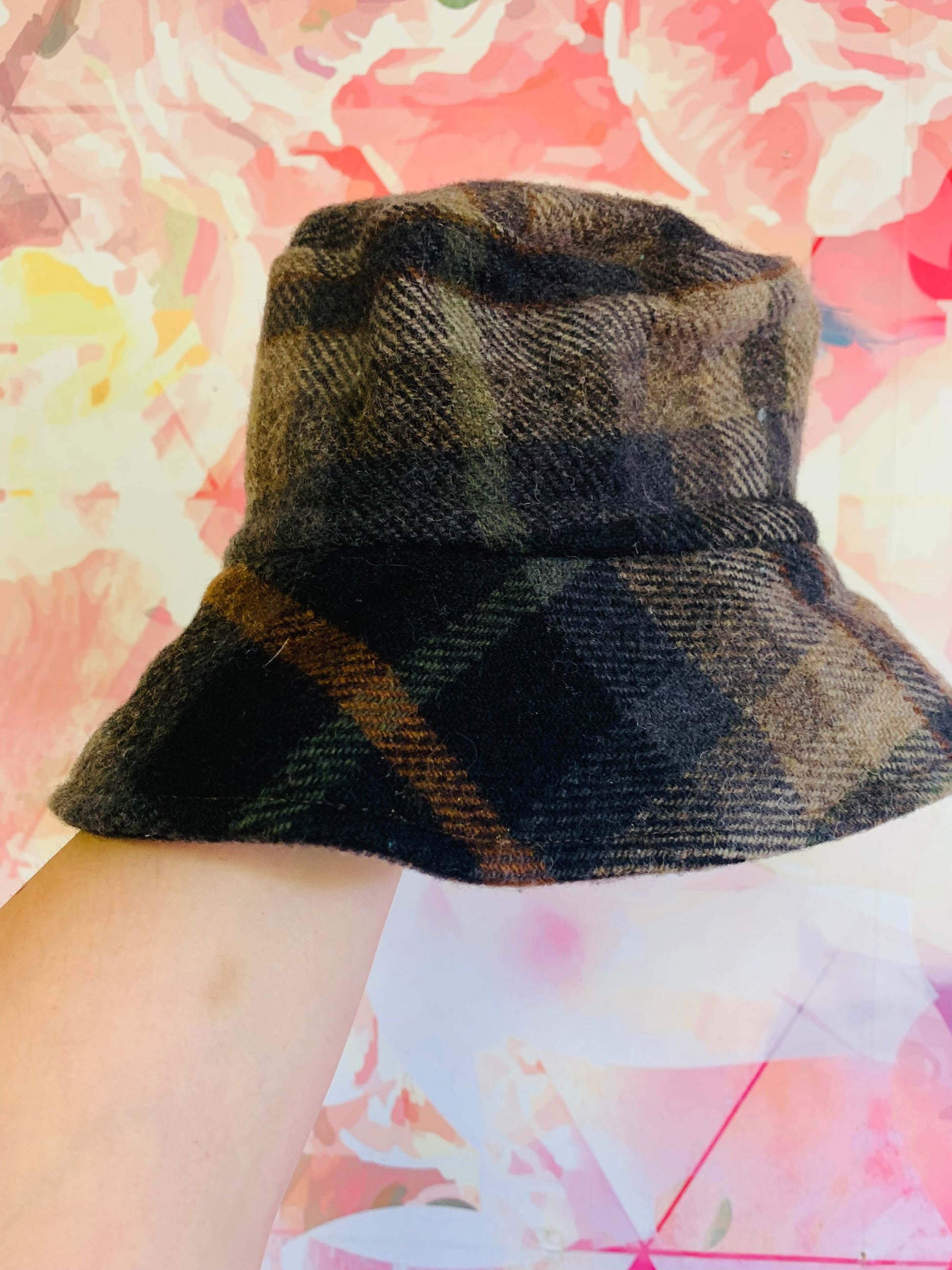 Bonpoint brown & black plaid 100% wool bucket hat. Size 0.