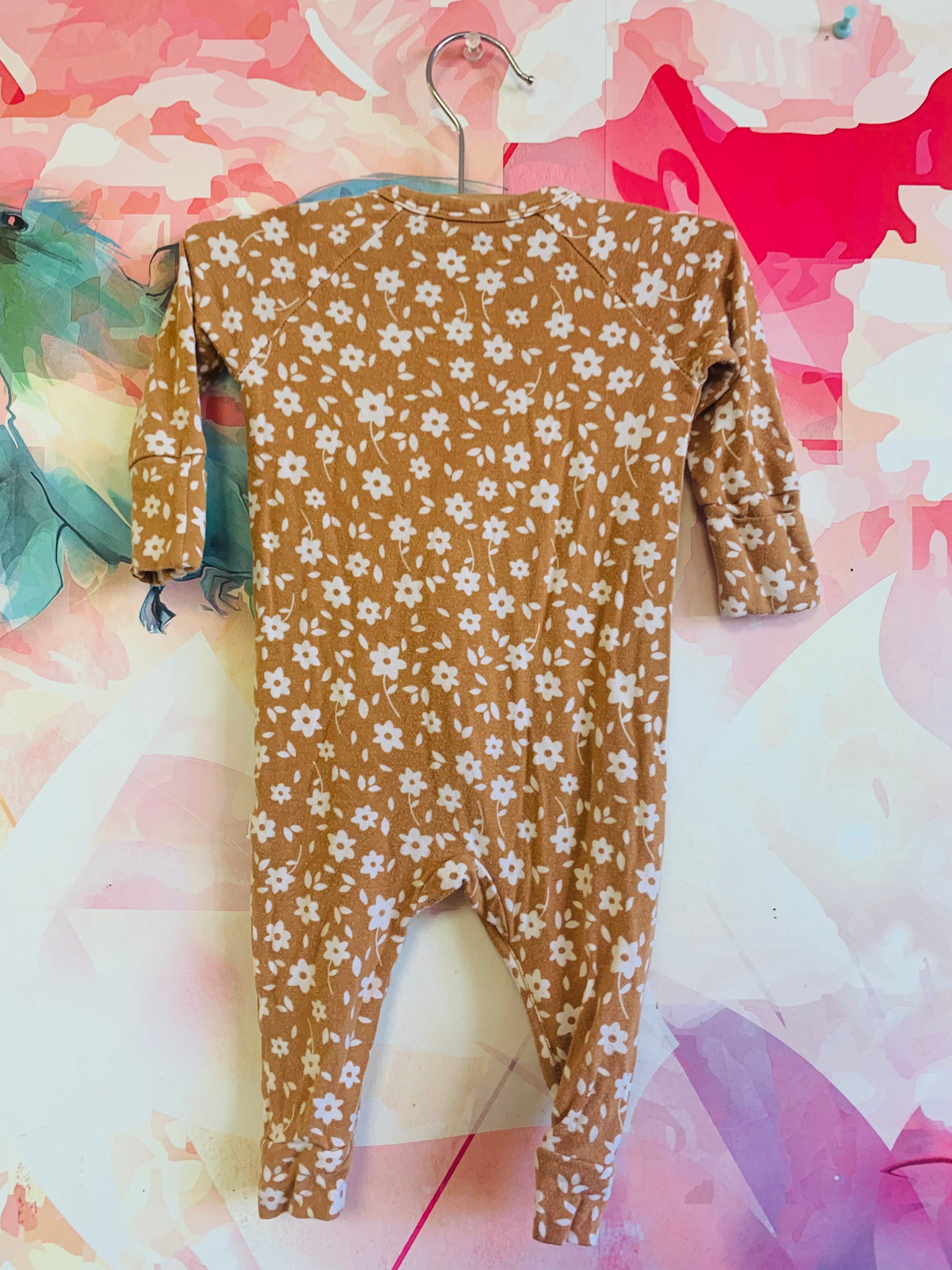 Brave Little Ones beige romper with white stars. Size 0-3m