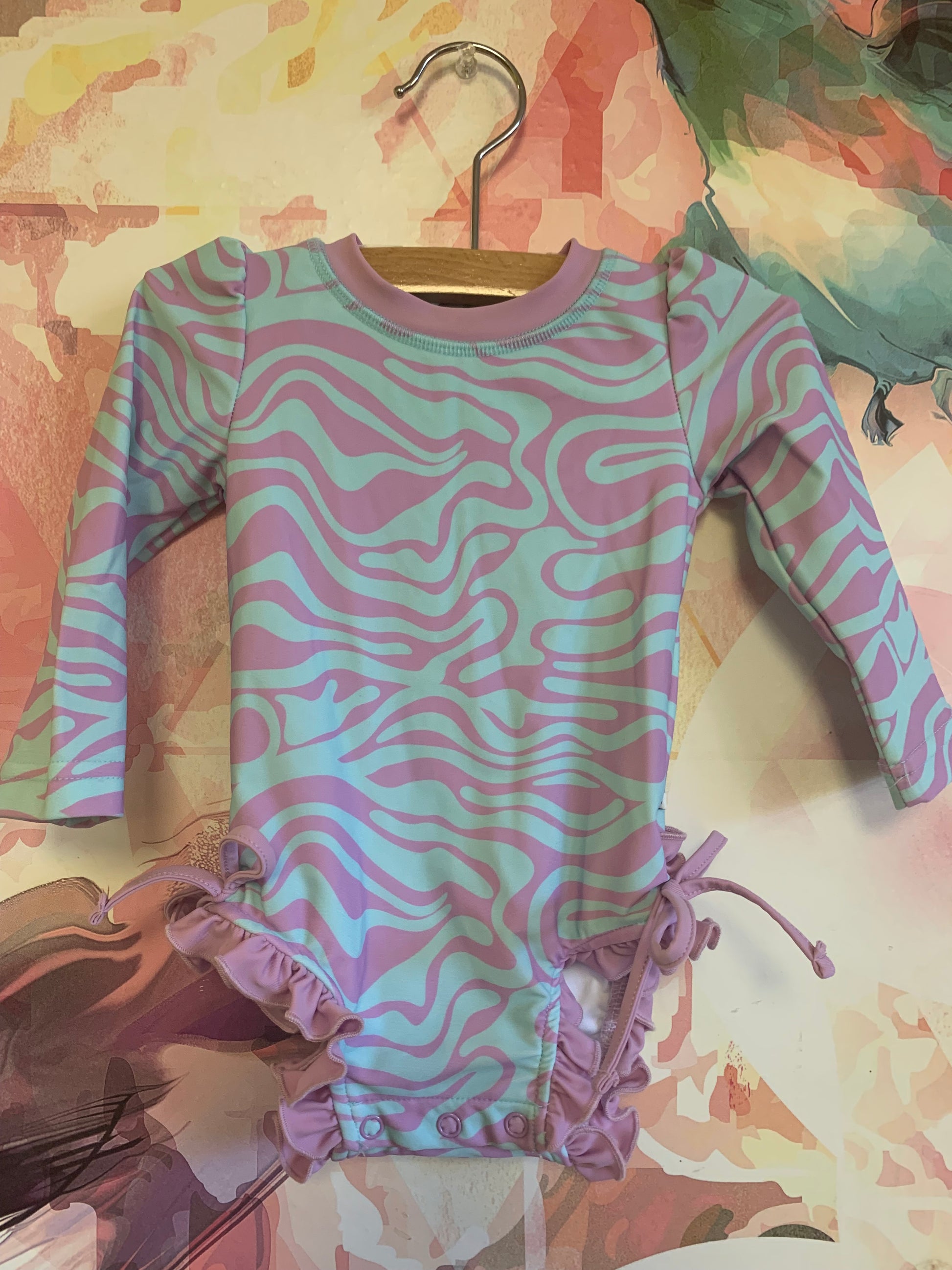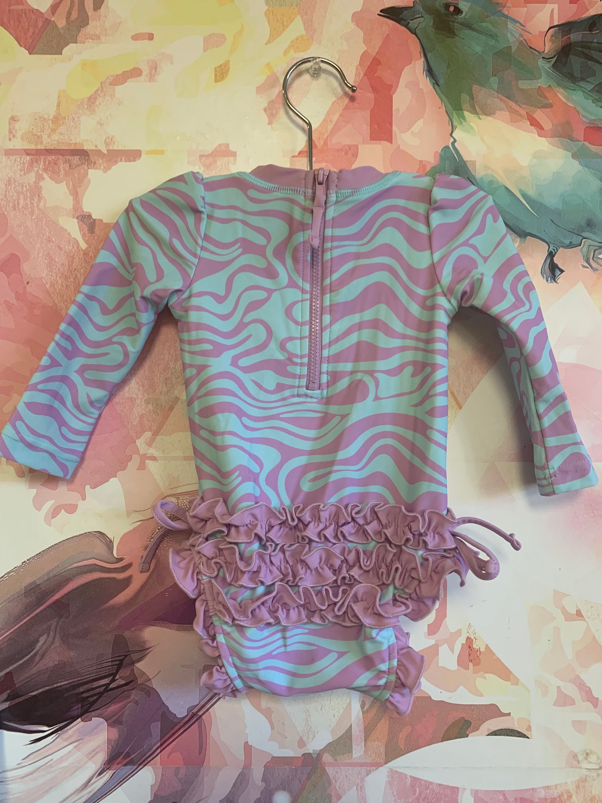 Caden Lane purple & blue long sleeve bathing suit. Size 3-6m