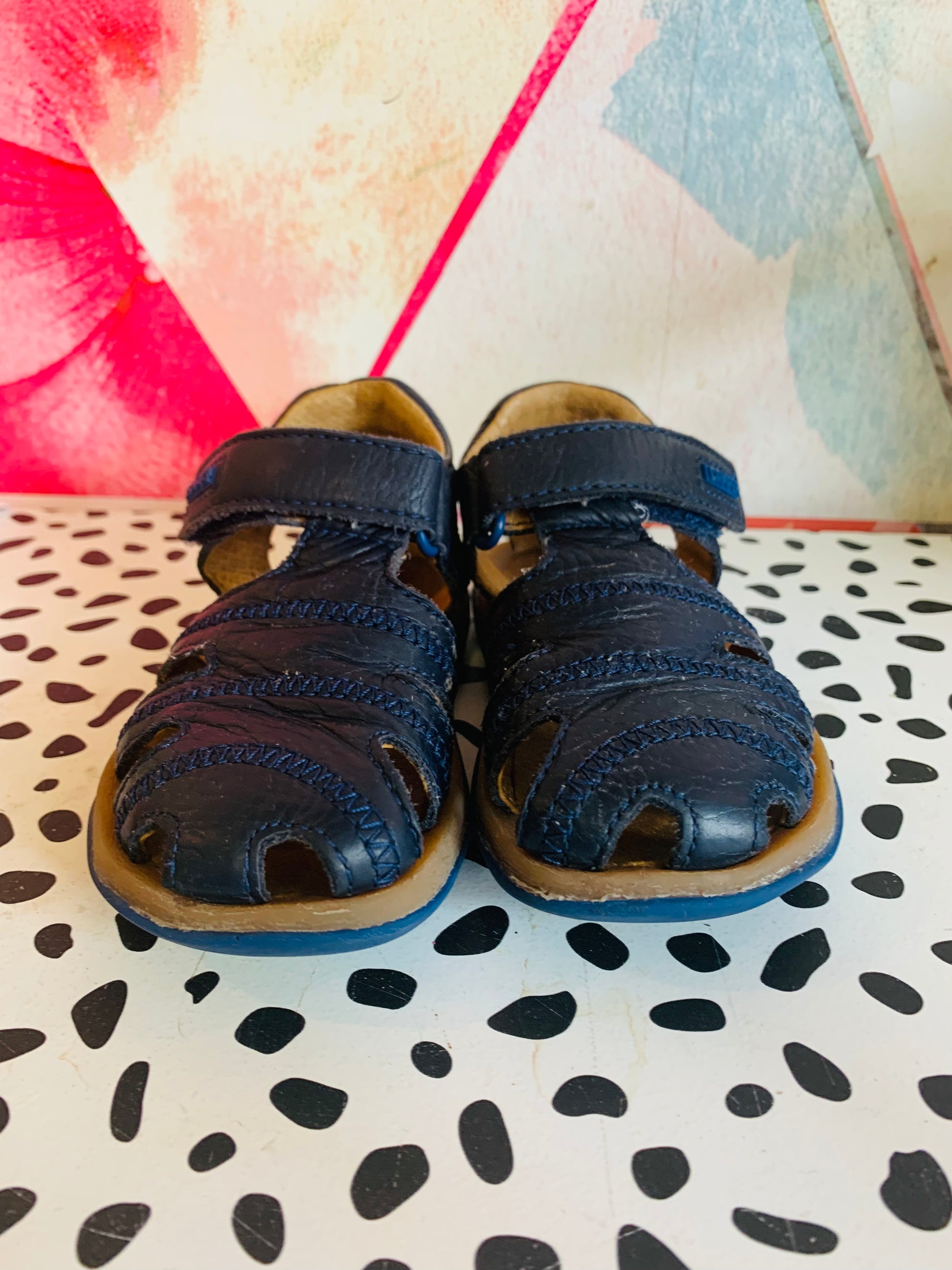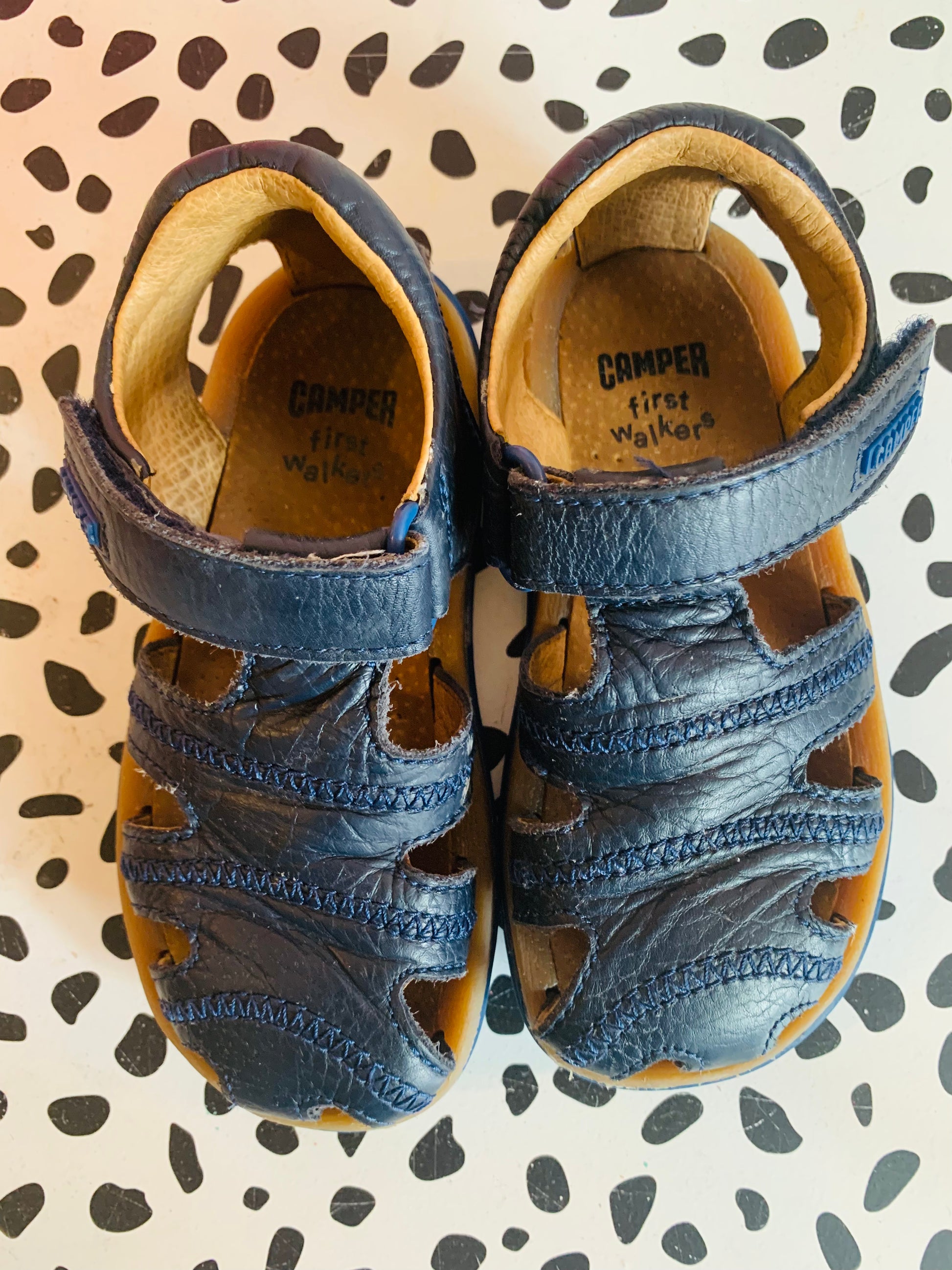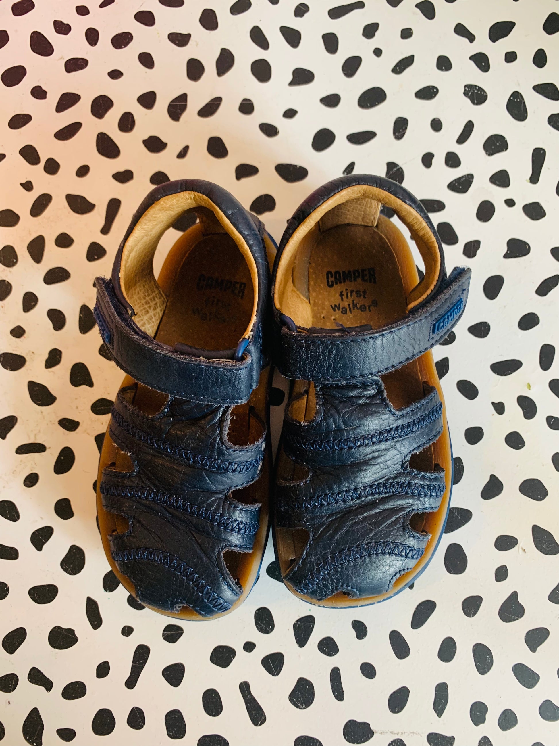 Camper blue leather sandals with Velcro strap. Size 7.5.