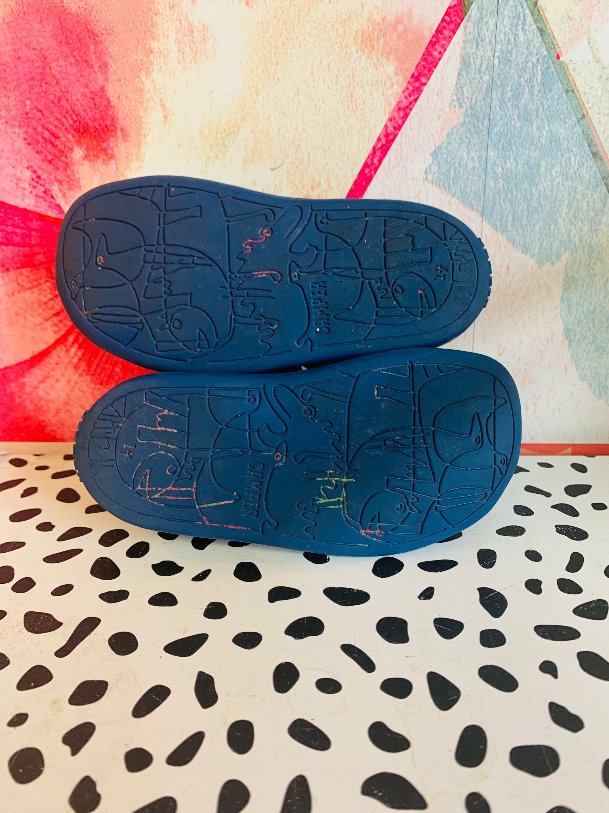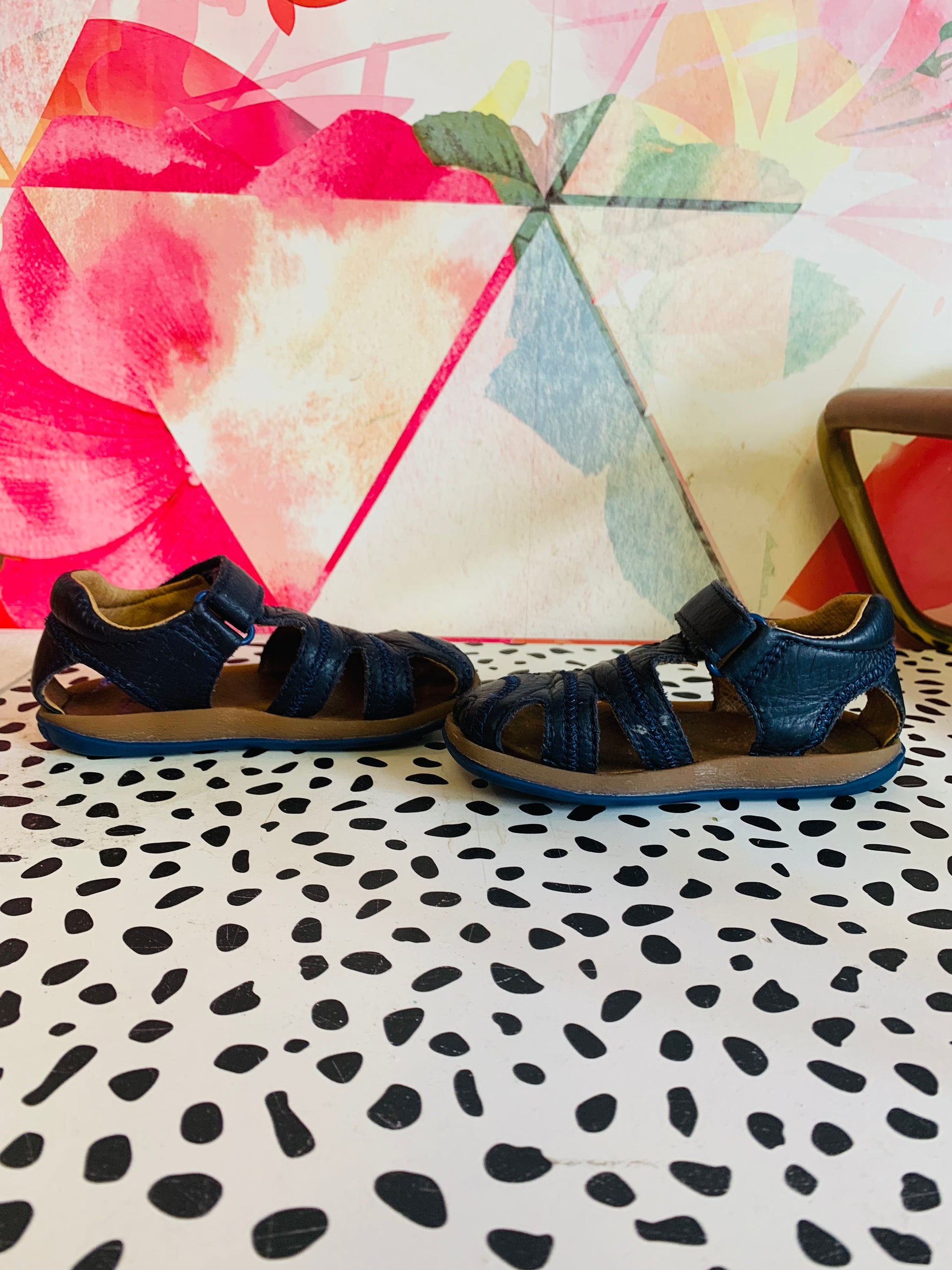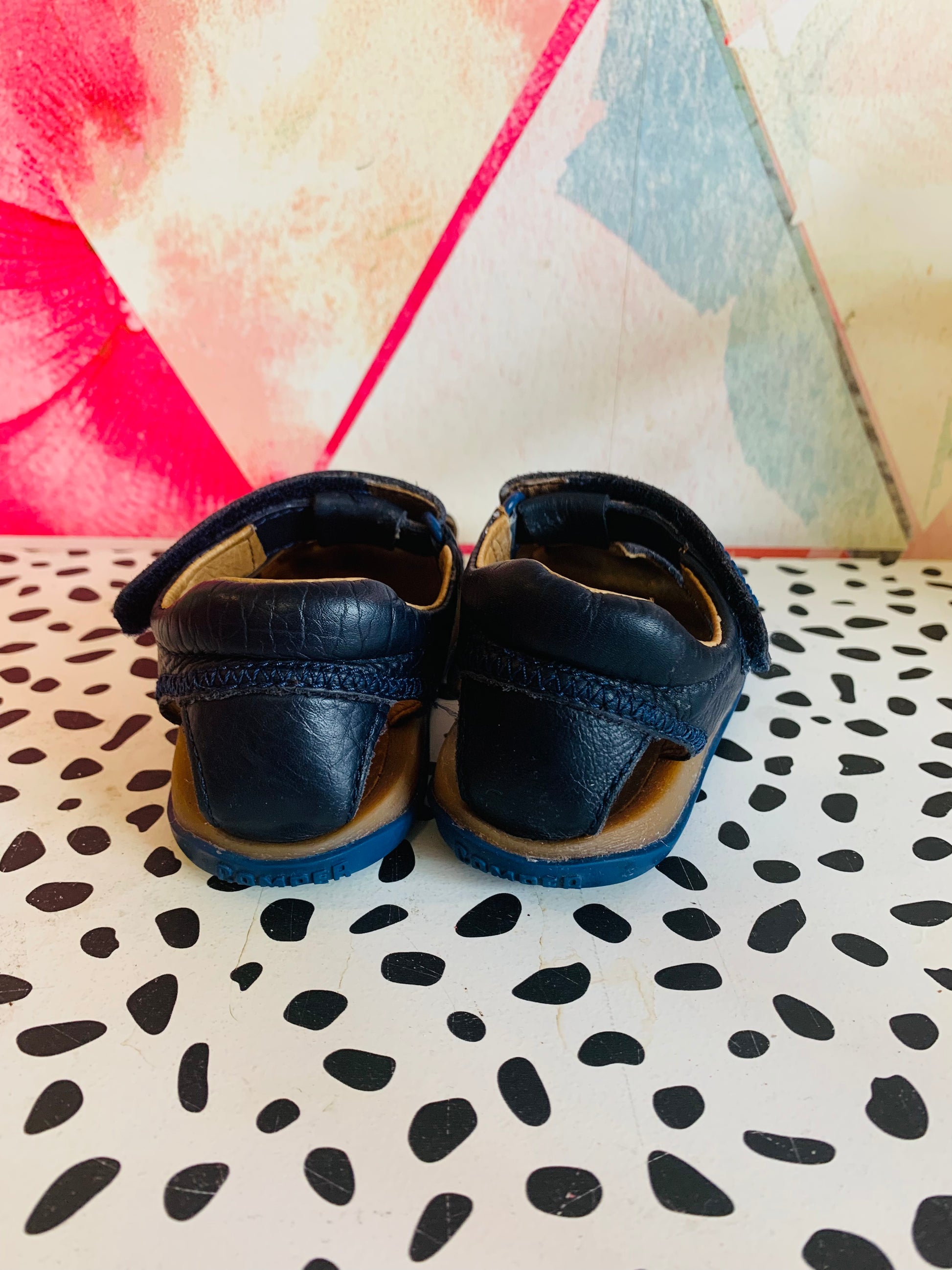 Camper blue leather sandals with Velcro strap. Size 7.5.