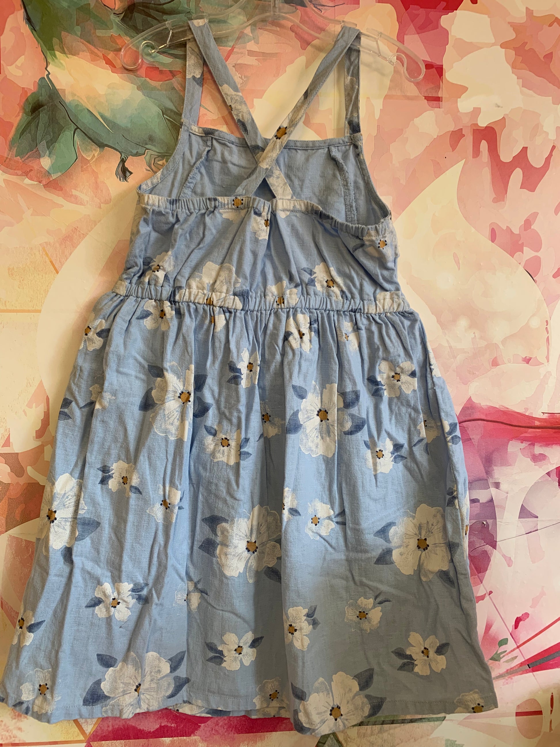 Carter’s blue dress with white flowers. Criss cross straps. Size 7T