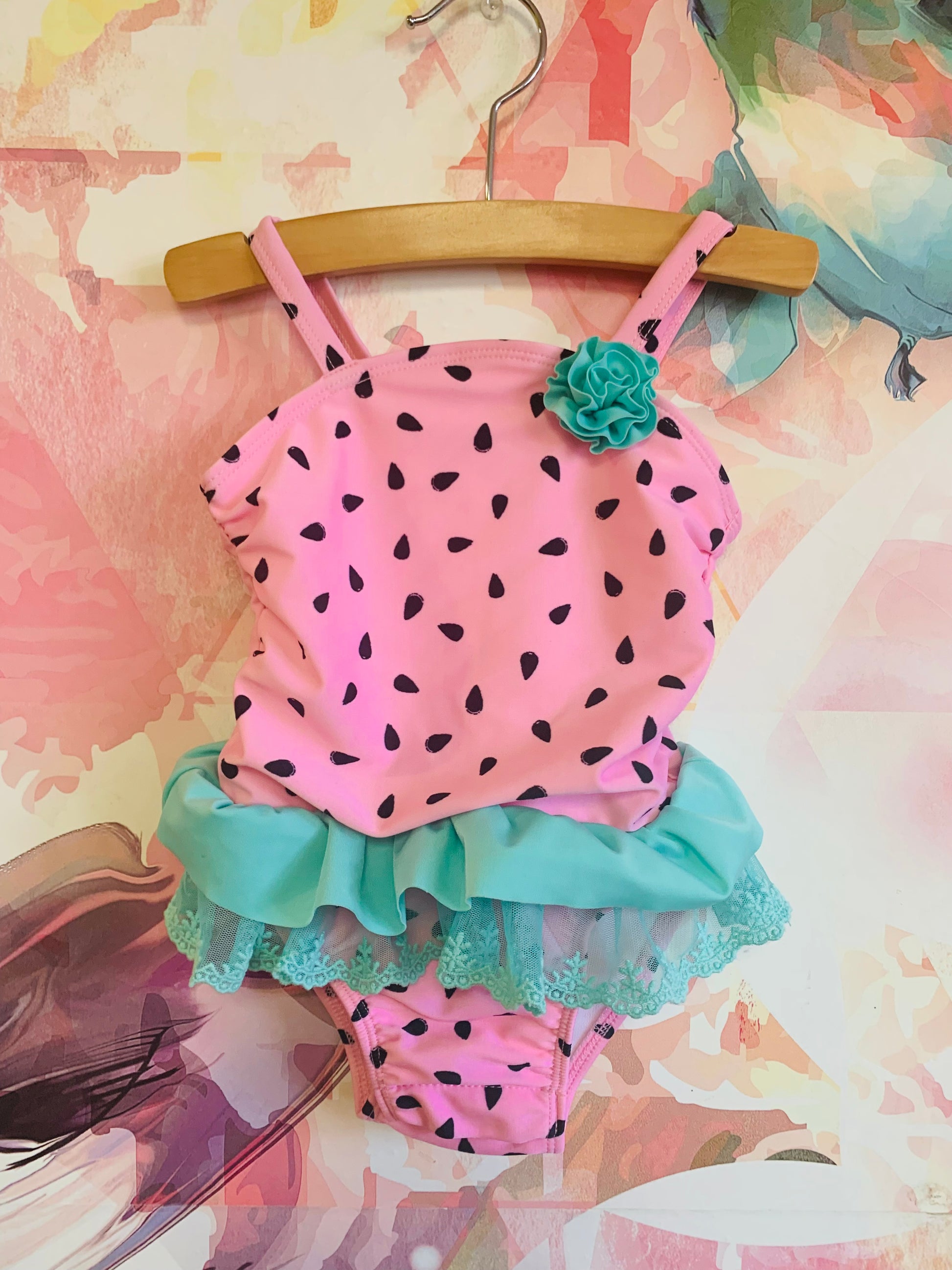 Cat & Jack pink/green watermelon swimsuit. Size 18m