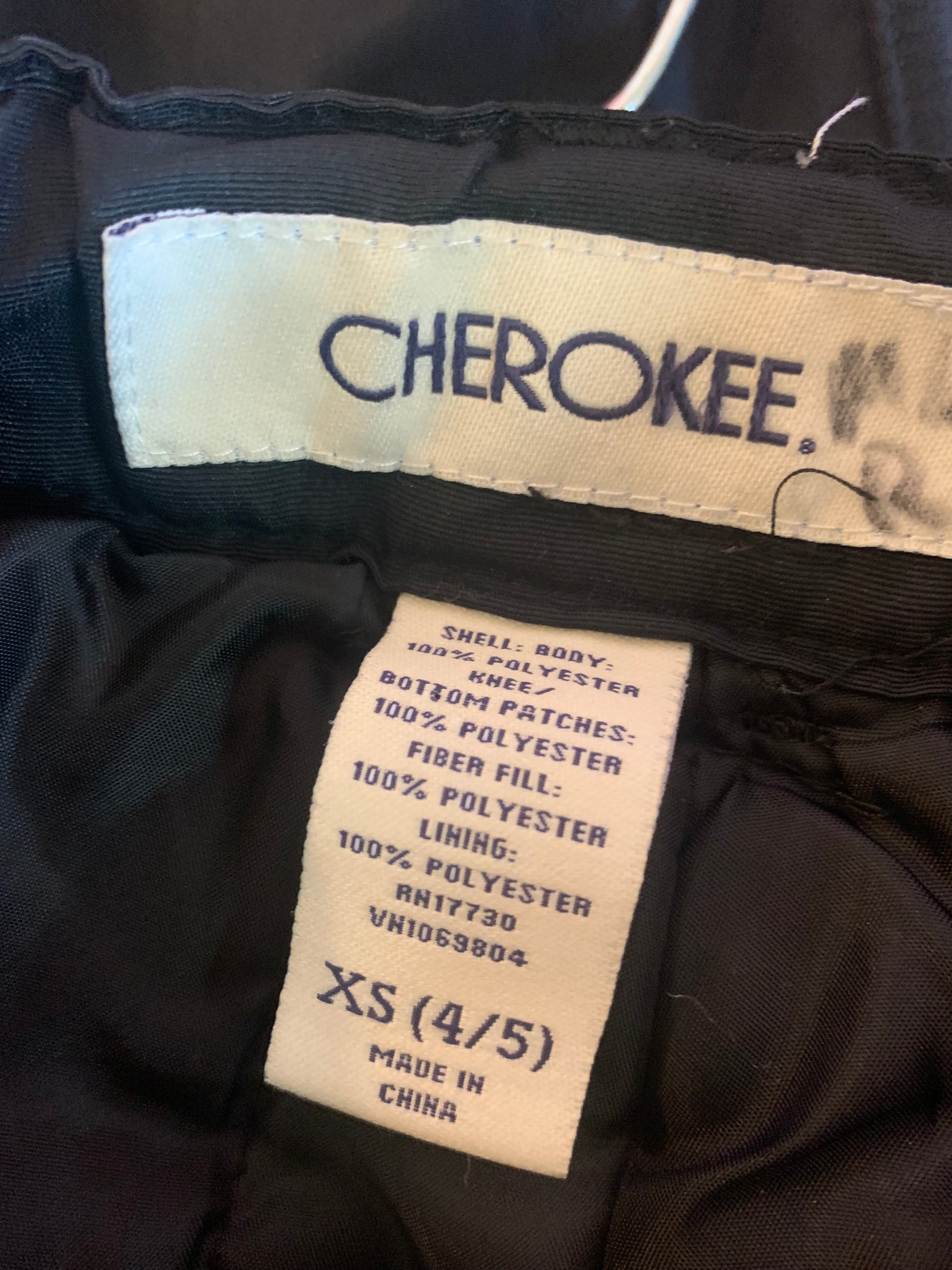 Cherokee black snow pants. Adjustable Velcro waist. Light wear on right knee (see second photo) size 4T / 5T