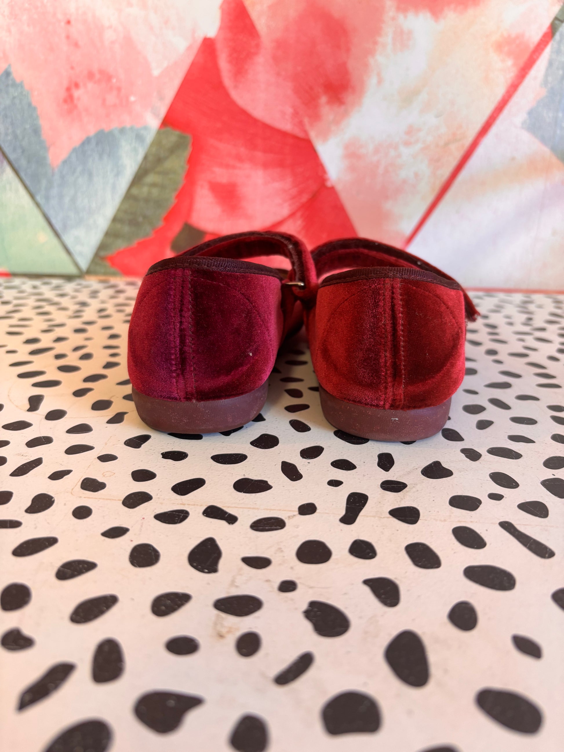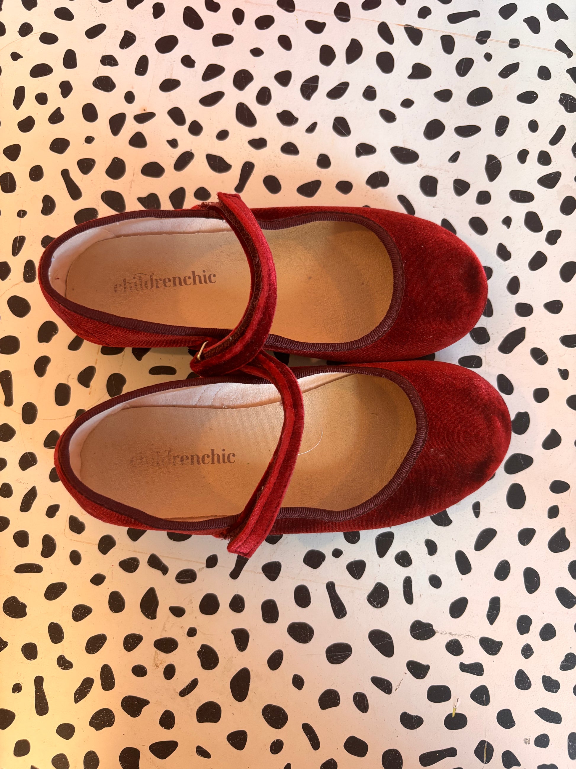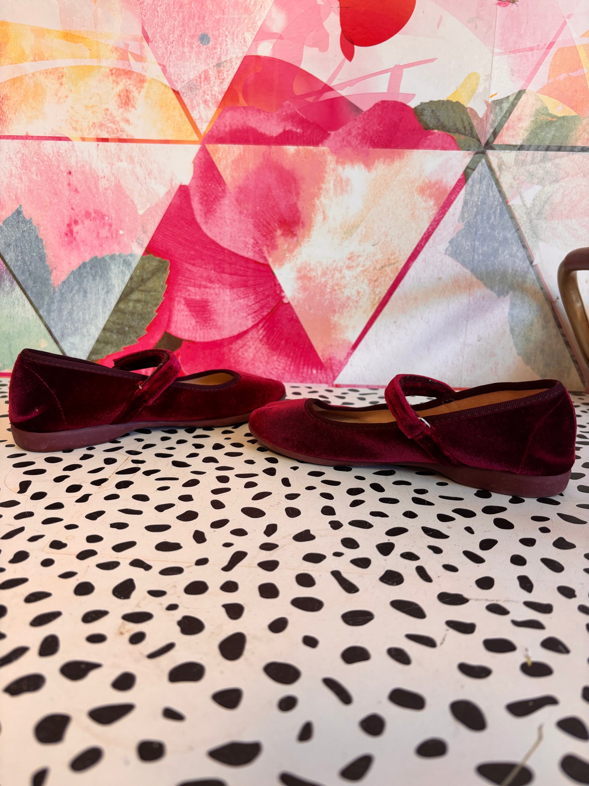 Children Chic. Mary Janes. Burgundy Velvet. Velcro straps. Size 1.5B
