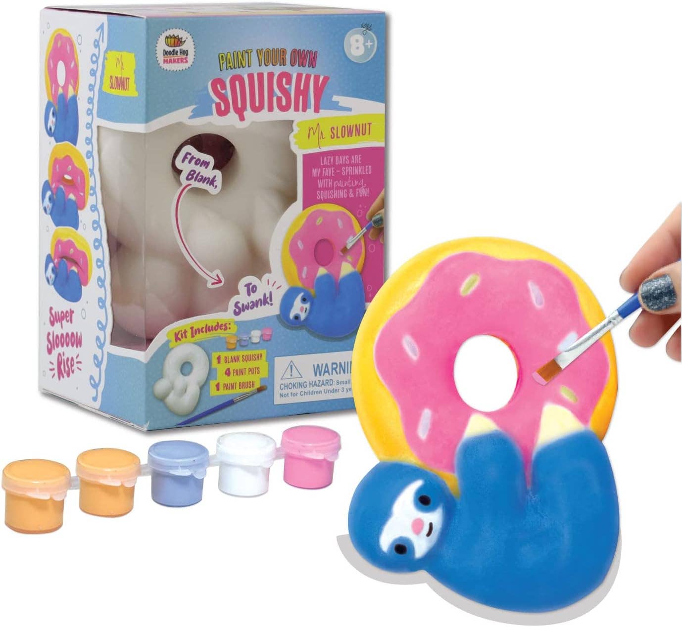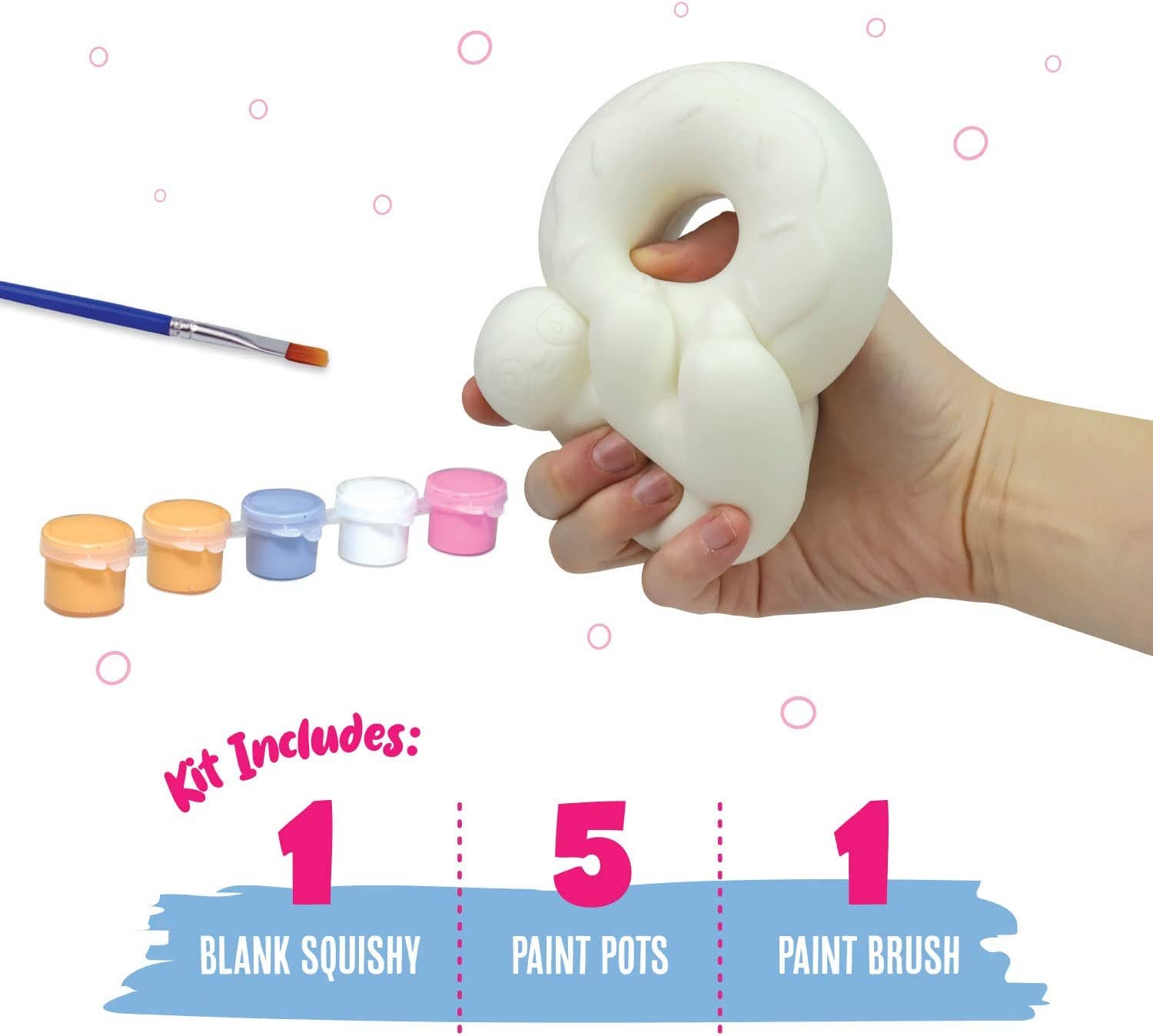 From Blank to Swank - Our squishies jumbo kit contains specially curated fabric paint for squishies in blue, yellow, white, and pink, one brush, and a large squishy donut-loving sloth. This super slow rise Squishy Kit has all you need to paint your own adorable sloth squishy, along with a color mixing chart. Your kiddos are in for loads of fun with this paint-your-own squishy kit! AWARD-WINNING TOY! A 2021 Oppenheim Toy Portfolio Gold Seal Award Winner for older early school and tweens. Not all squishies are created equal. Our giant squishies are high quality and truly SLOW RISE at 10 seconds compared to others at a 2-second rise. Our slow-rise squishies also have that perfect squishie smell. Your tween or teen will know the difference! Diy Sensory - Play, poke, stretch, squeeze and squish! Squishy toys are great for calm, focus, increasing hand strength, and helping relieve anxiety in kids.