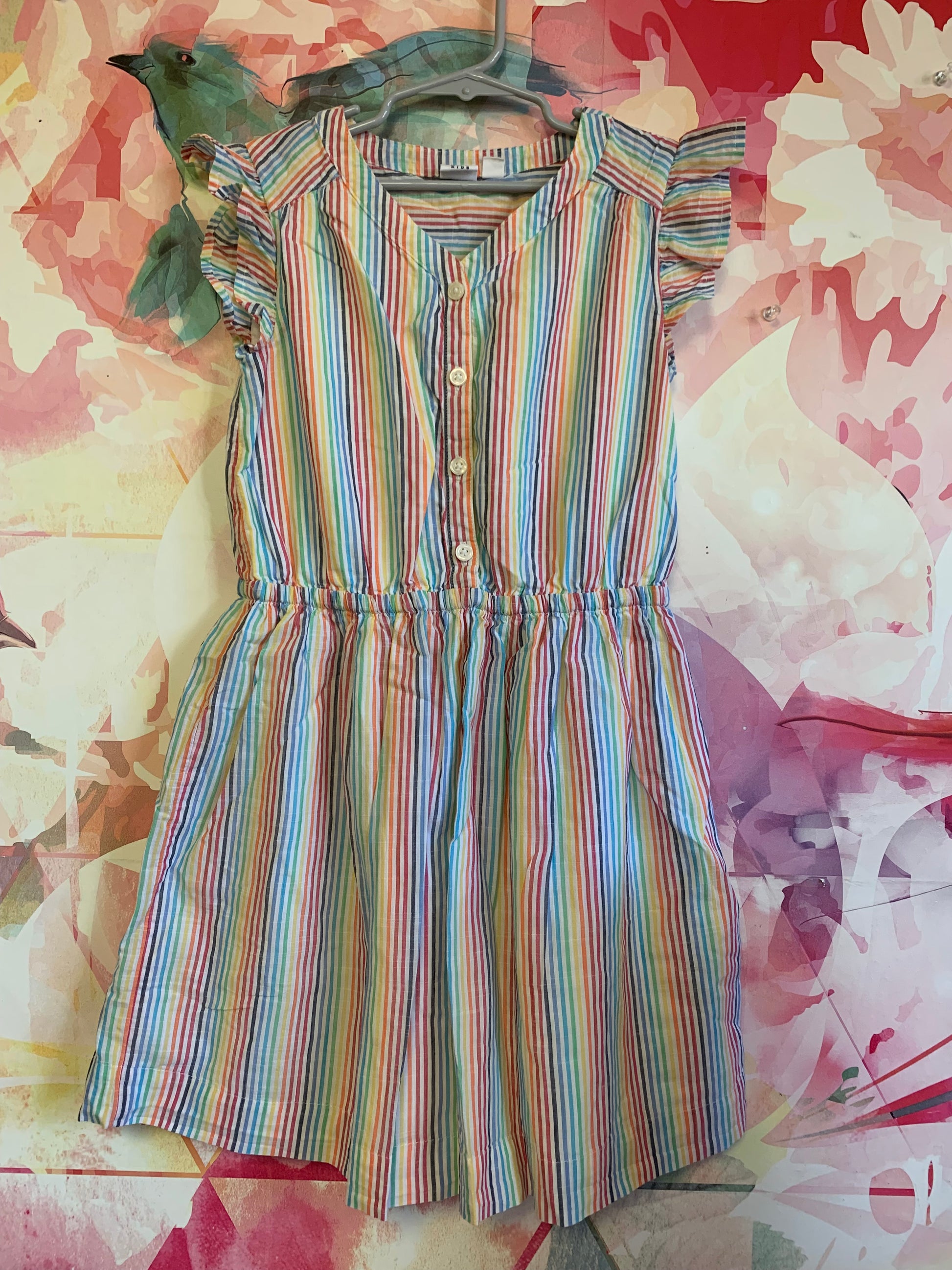 Gap Kids rainbow stripe shirt sleeve dress. Size 8