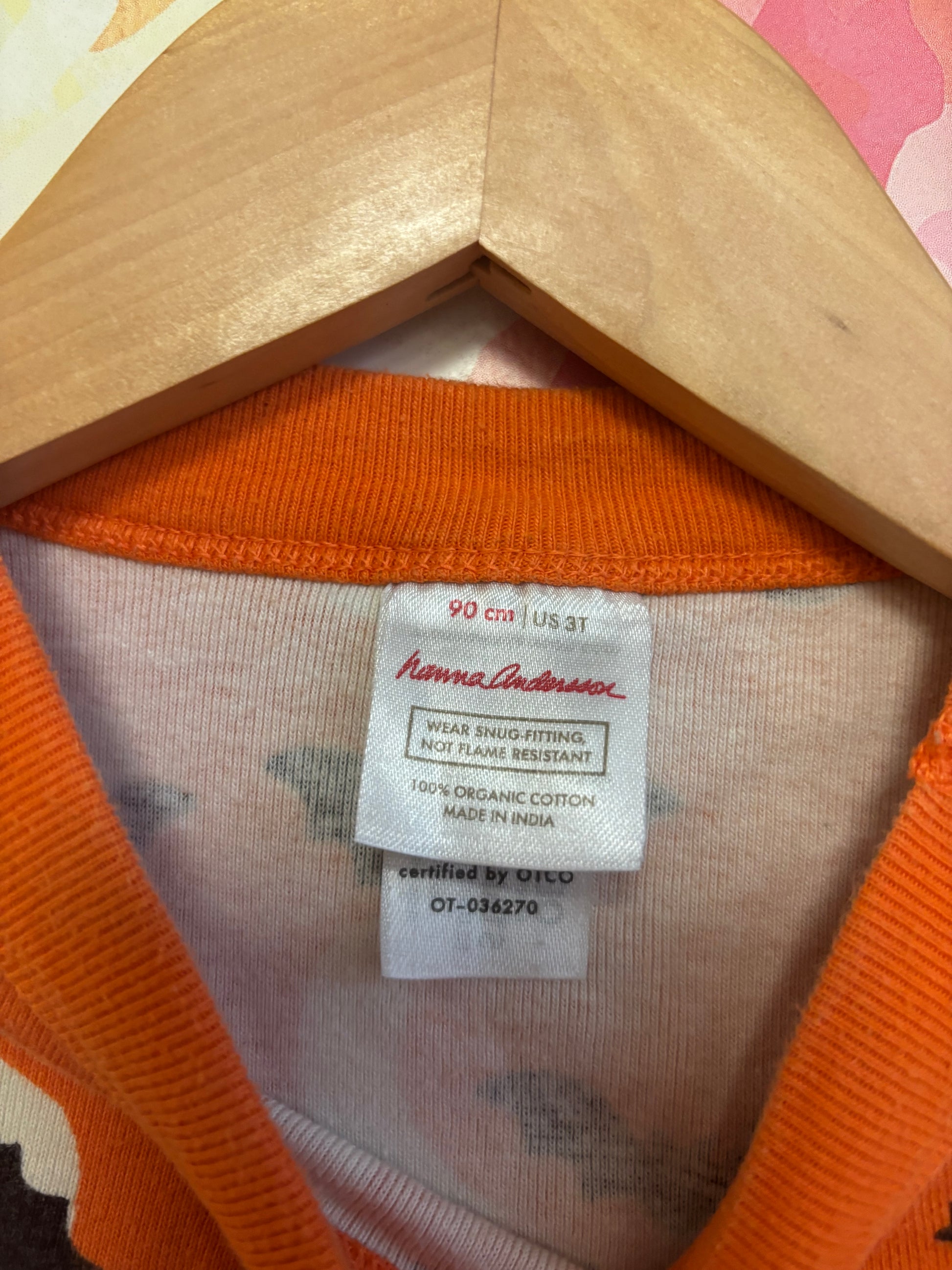 Hanna Andersson orange Halloween pajamas with black bats. Size 3T