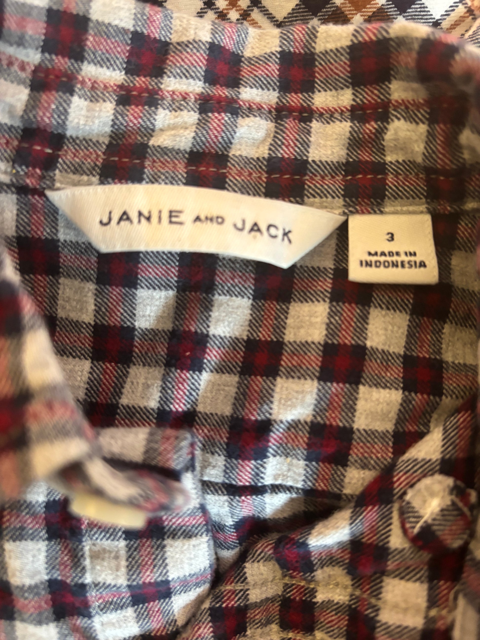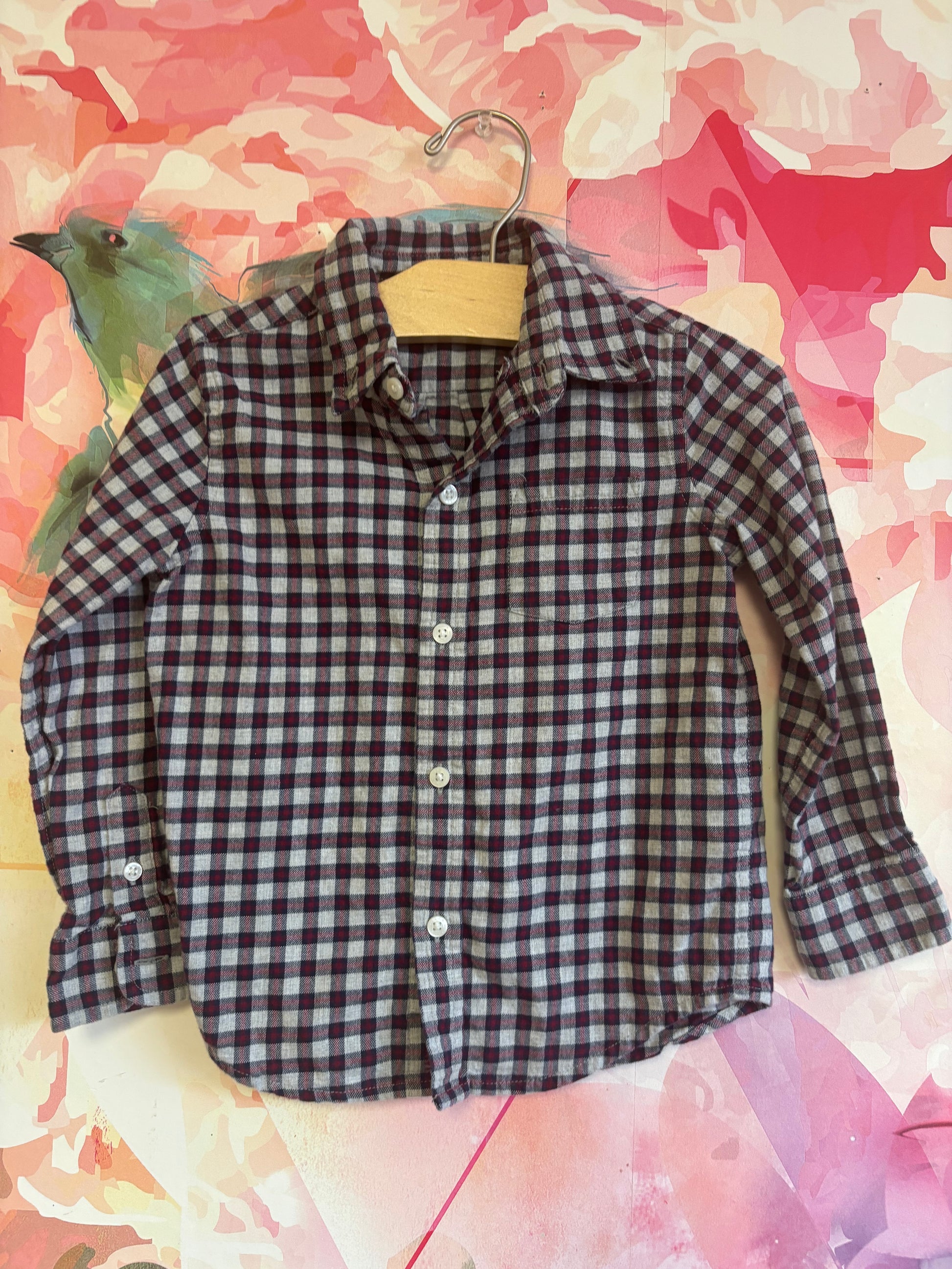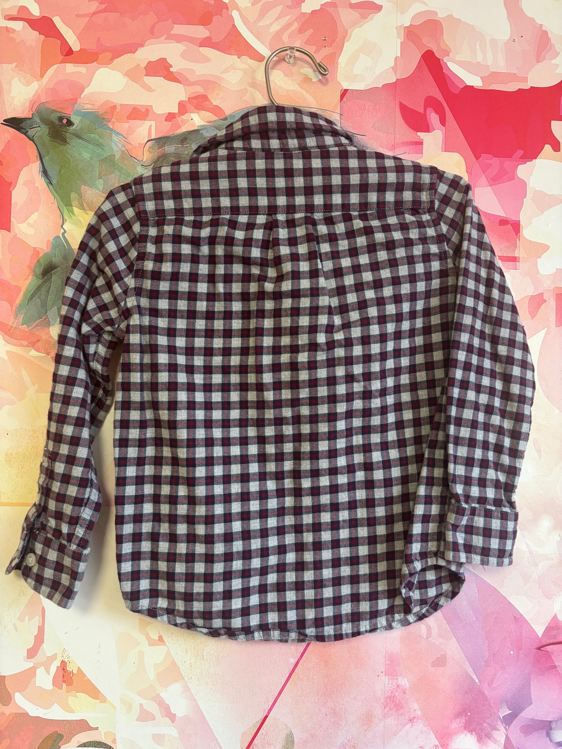Janie & Jack grey, red, blue checkered button down long sleeve shirt. Size 3T.