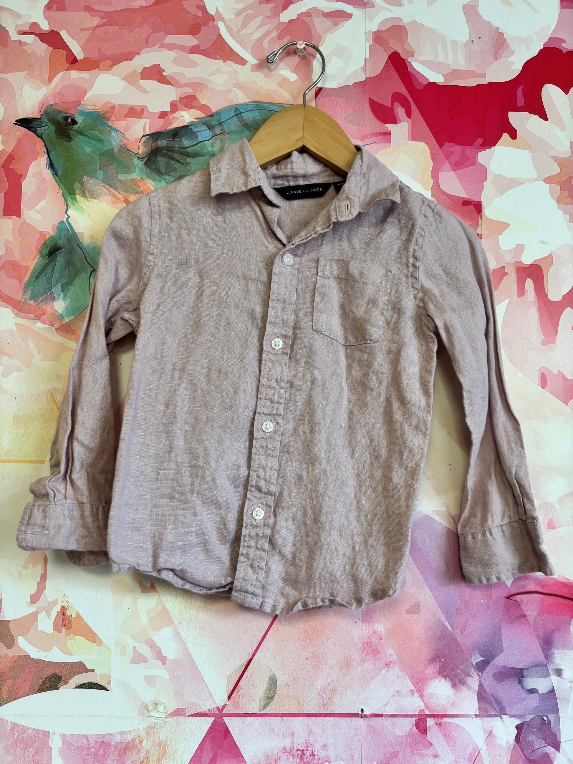 Janie & Jack Pale Pink Linen Button Down Shirt. Size 3T.