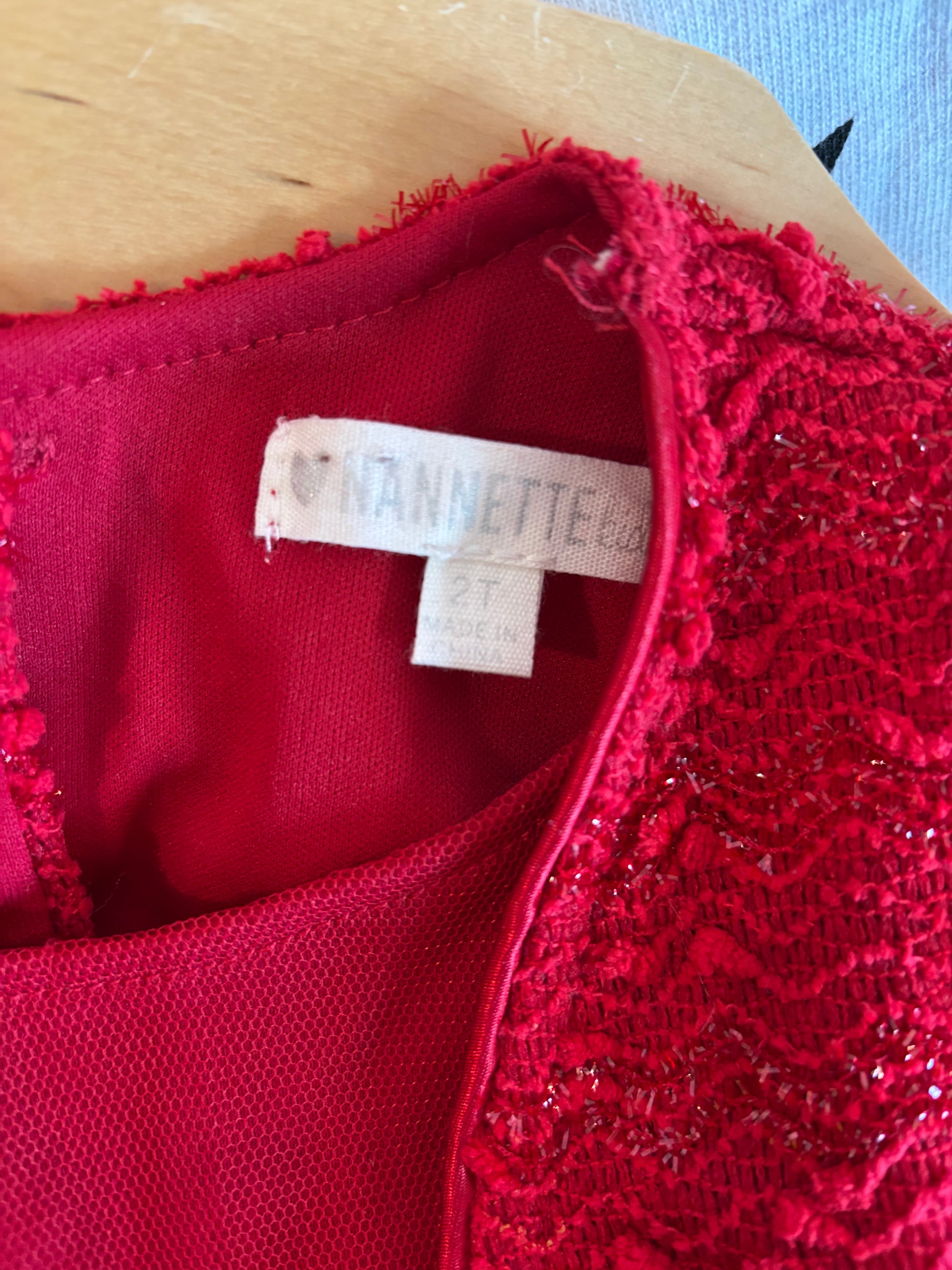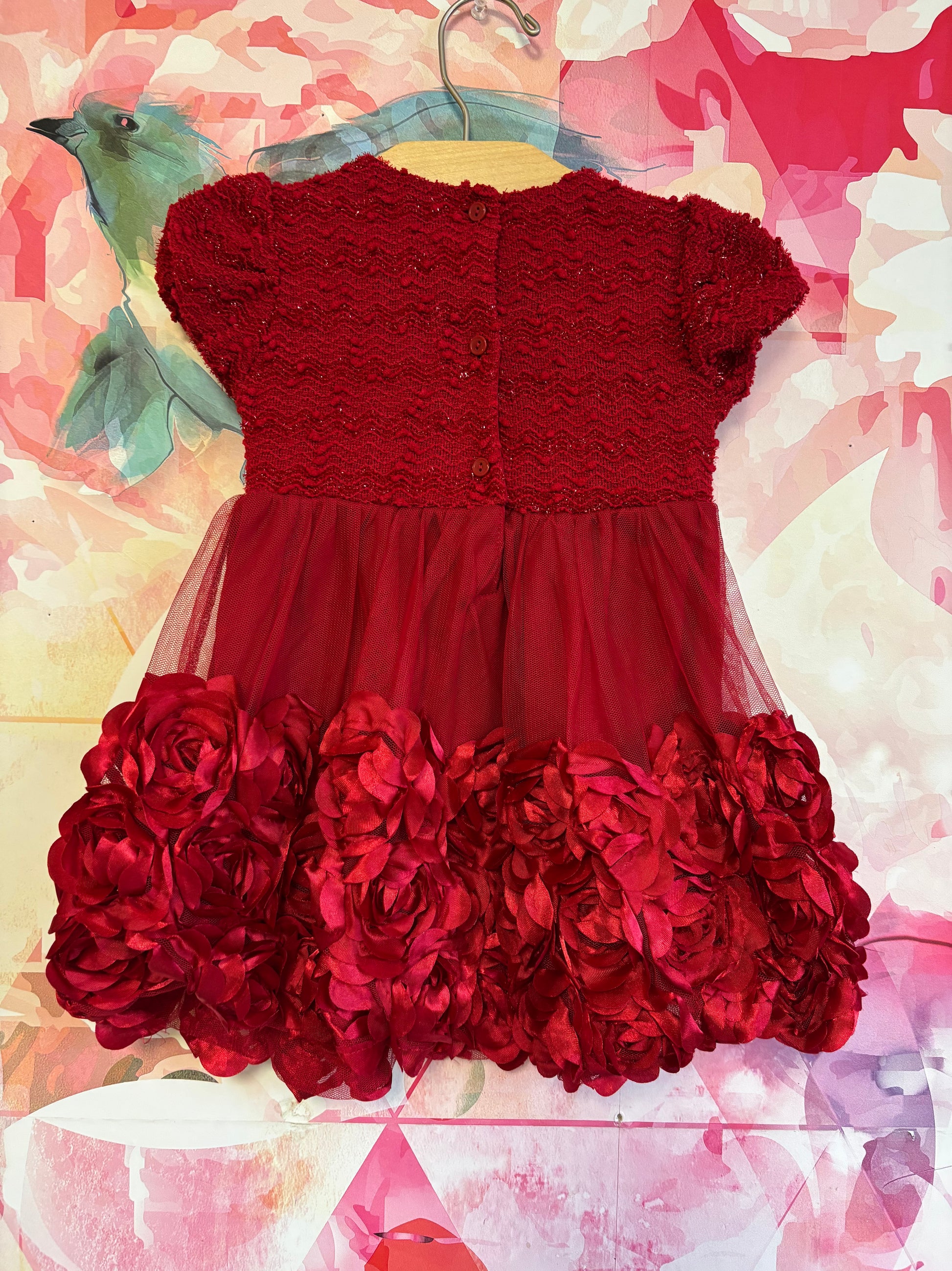 Nannette Kids red short sleeve rose dress. Size 2T.