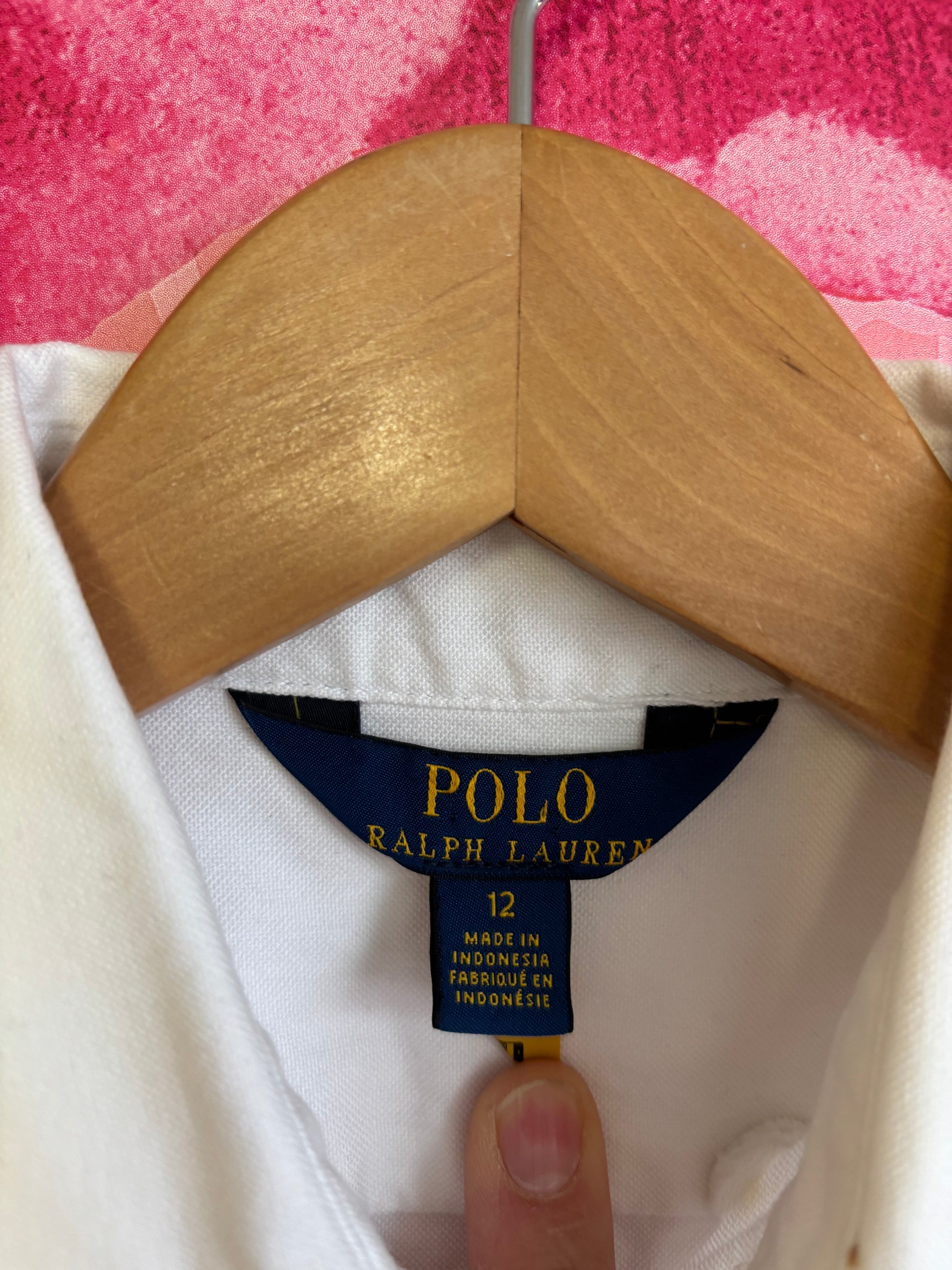 Polo Ralph Lauren white button front sleeveless shirt dress with blue belt. Size 12