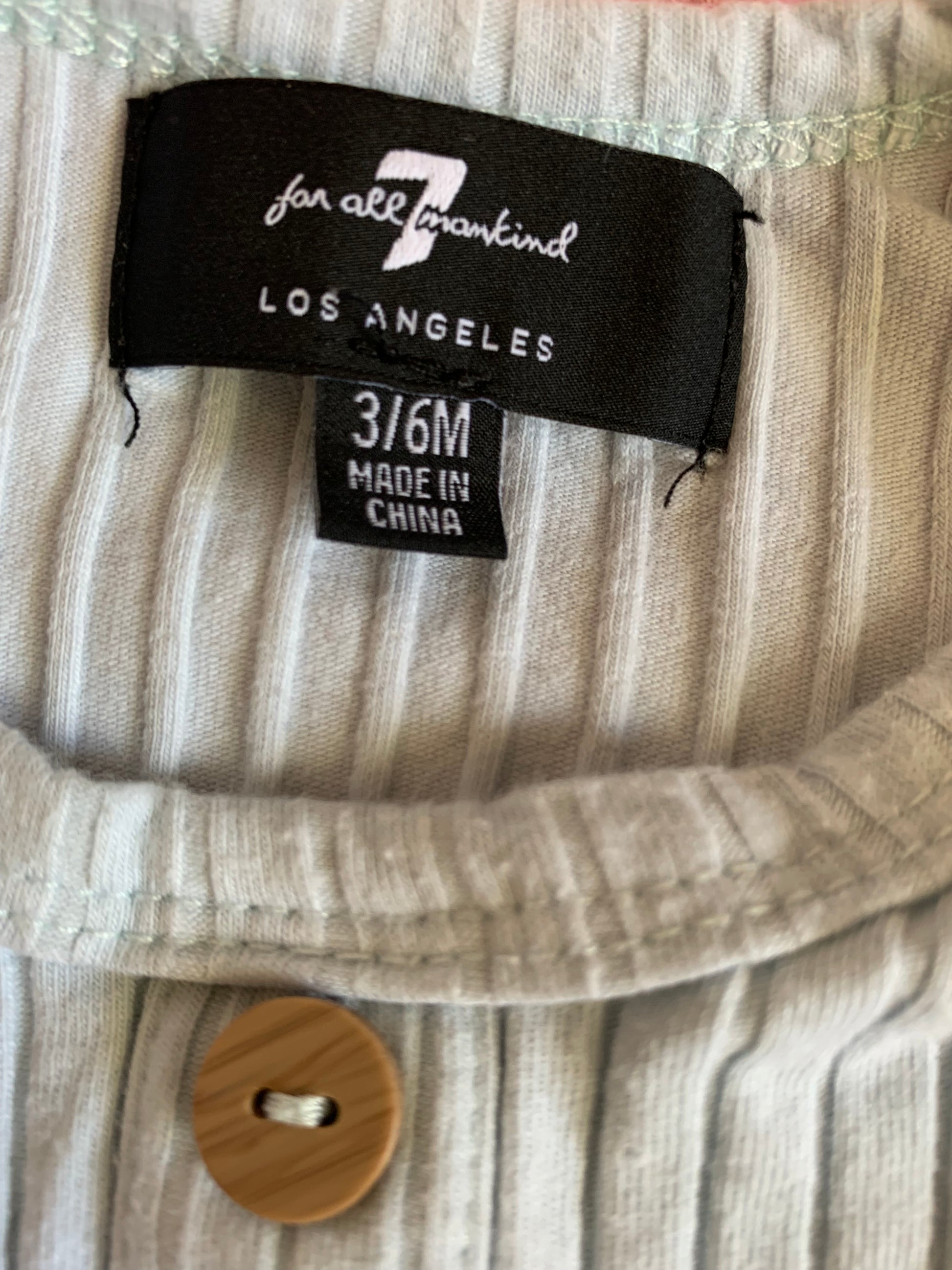 Seven For All Mankind light blue ribbed long sleeve romper & joggers. Size 3-6m.