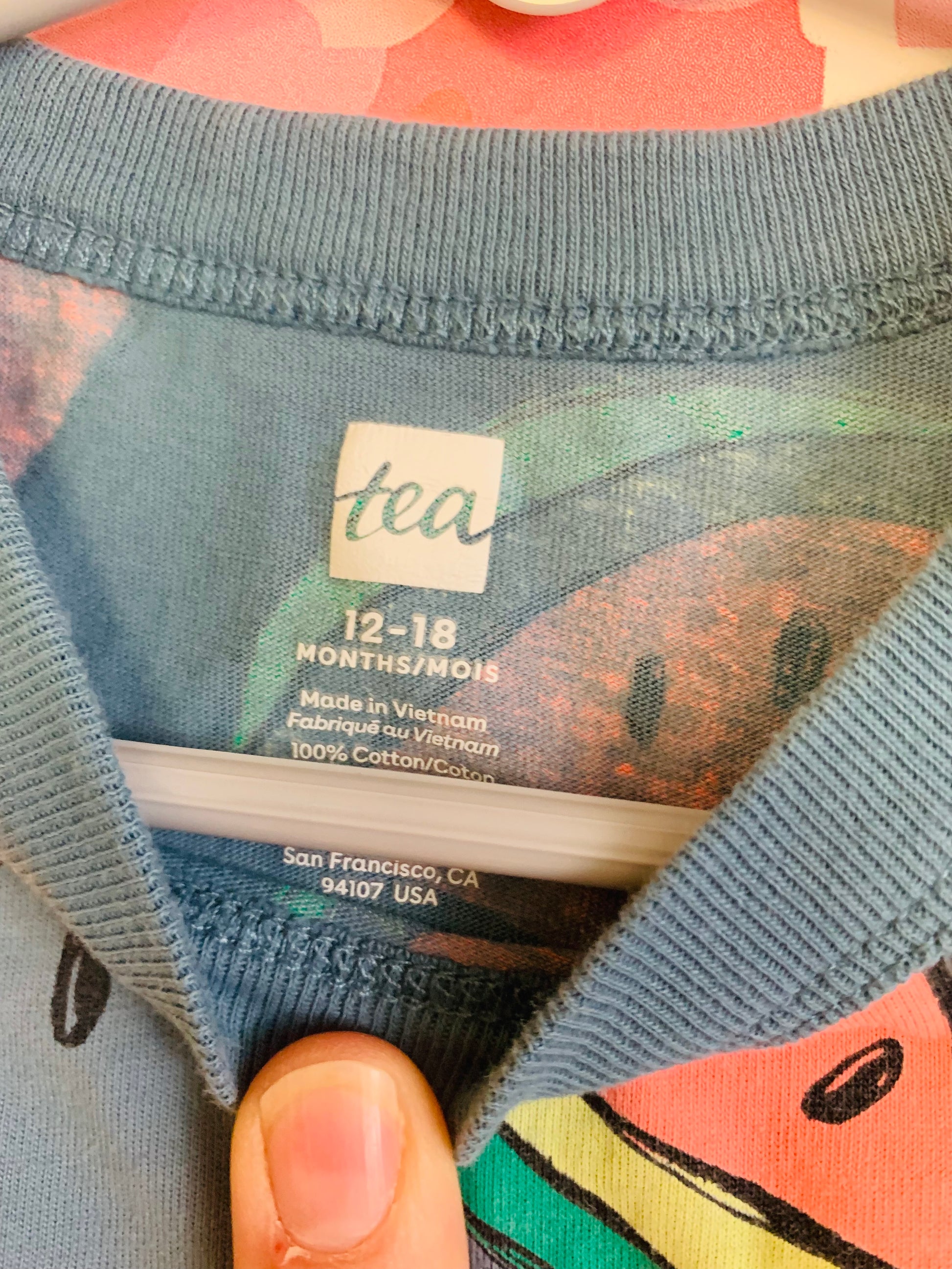 Tea Collection blue short sleeve romper with watermelons & Hanna Andersson blue/white stripe short sleeve romper. Size 12-18m