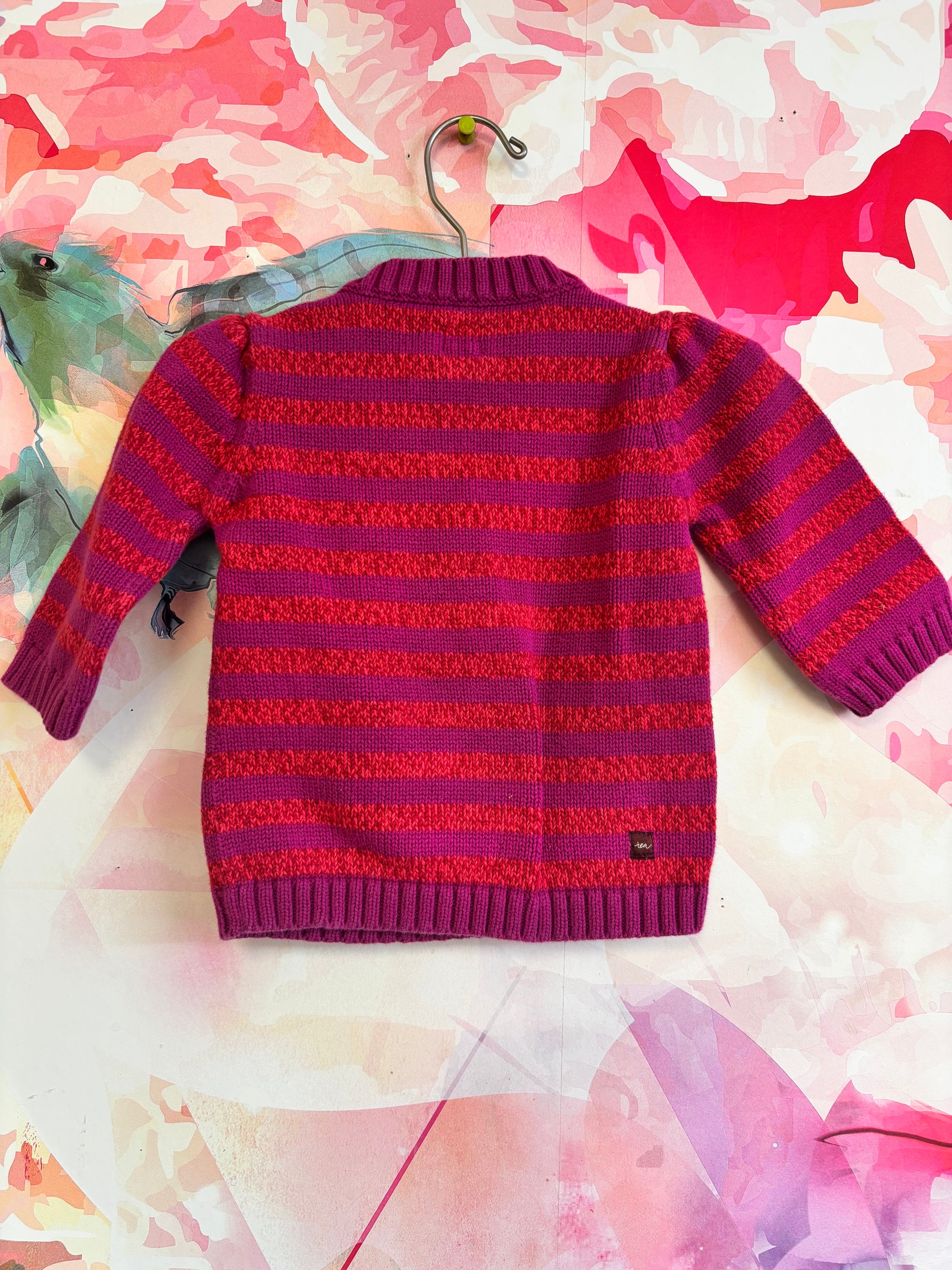 Tea Collection purple & red stripe sweater with diagonal shoulder buttons. Size 3T.