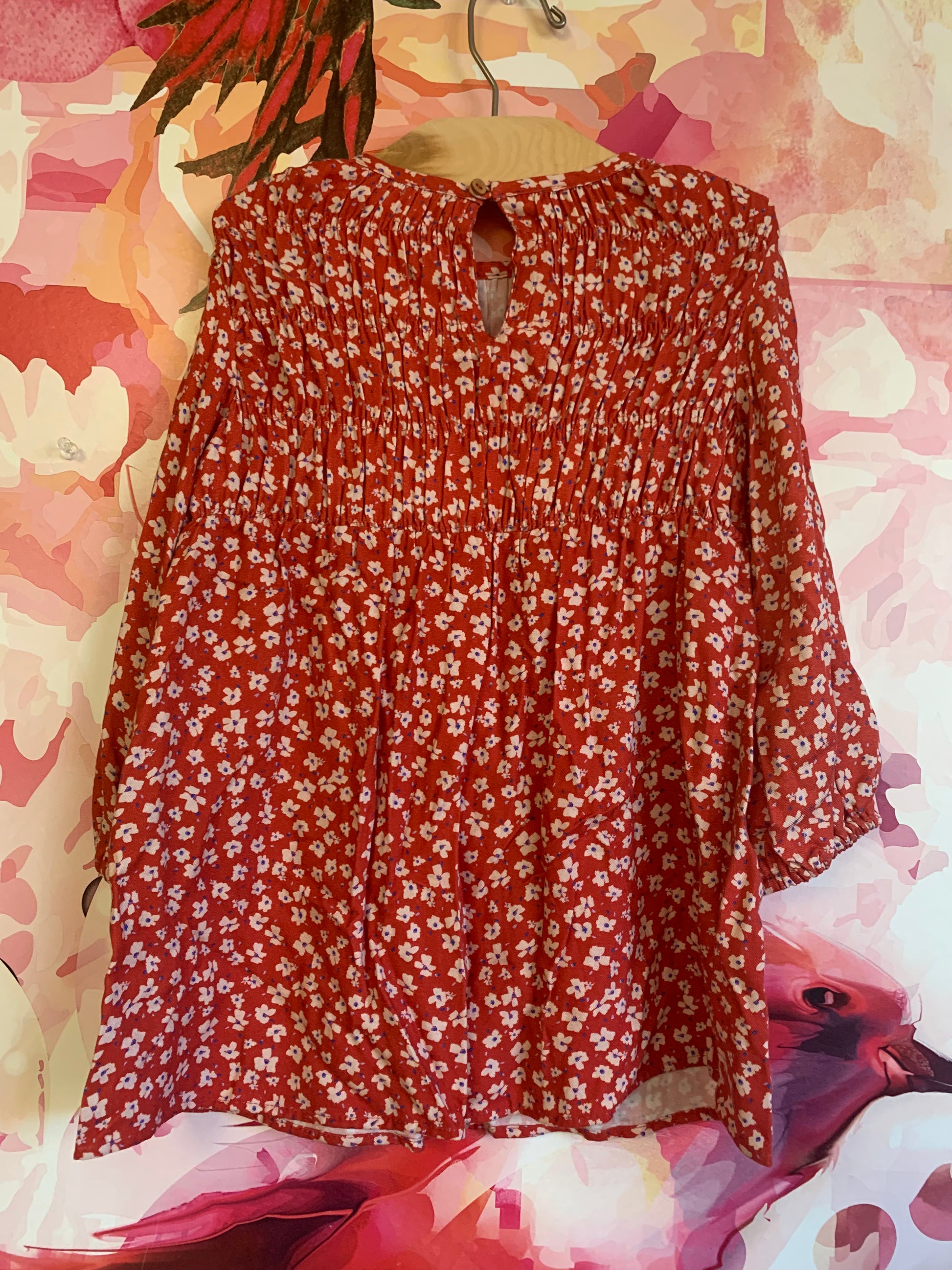 Zara red dress with tiny white/blue flowers. Size 3T / 4T